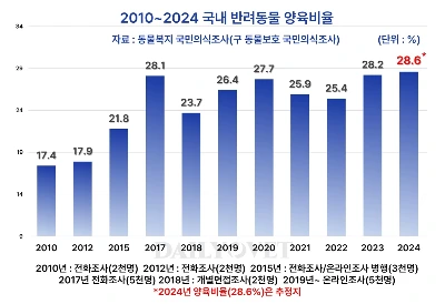 국내 반려동물 양육 비율이 약 28.6%로 역대 최고치를 기록했다고 한다.