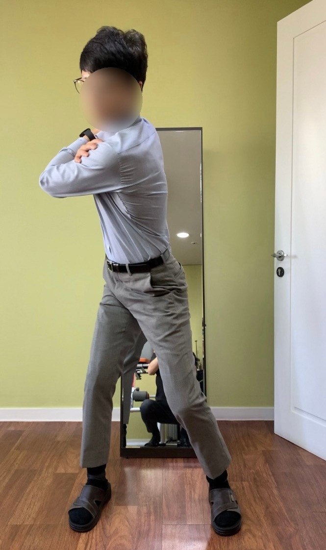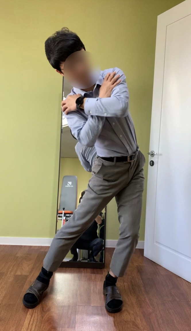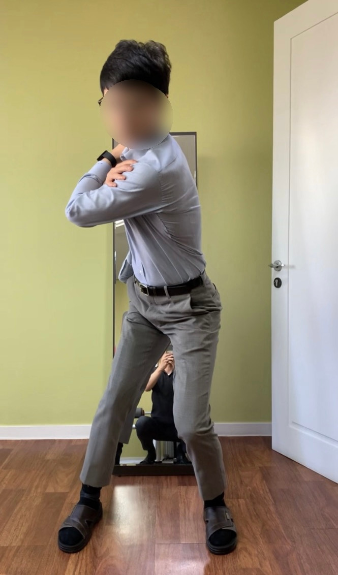 체조 1단계가 어깨와 골반 주변의 근육을 만나는 과정이라면 체조 2단계는 몸동작이 크게 들어가기 때문에 간단치가 않다. 하체를 고정하고 어깨를 회전하던 1단계와 달리 2단계에서는 하체를 적극적으로 활용해야한다.