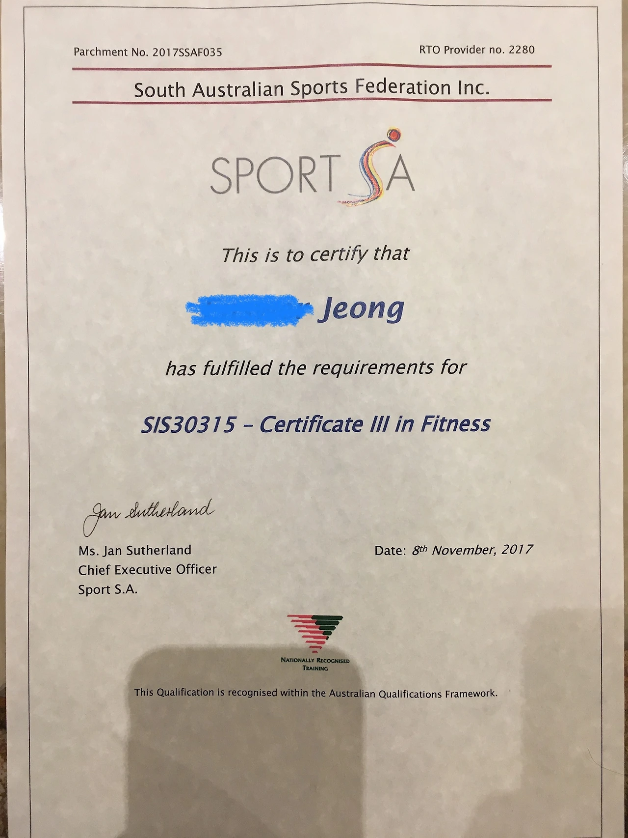 아들이 11학년에 취득한 헬스 트레이너 자격증