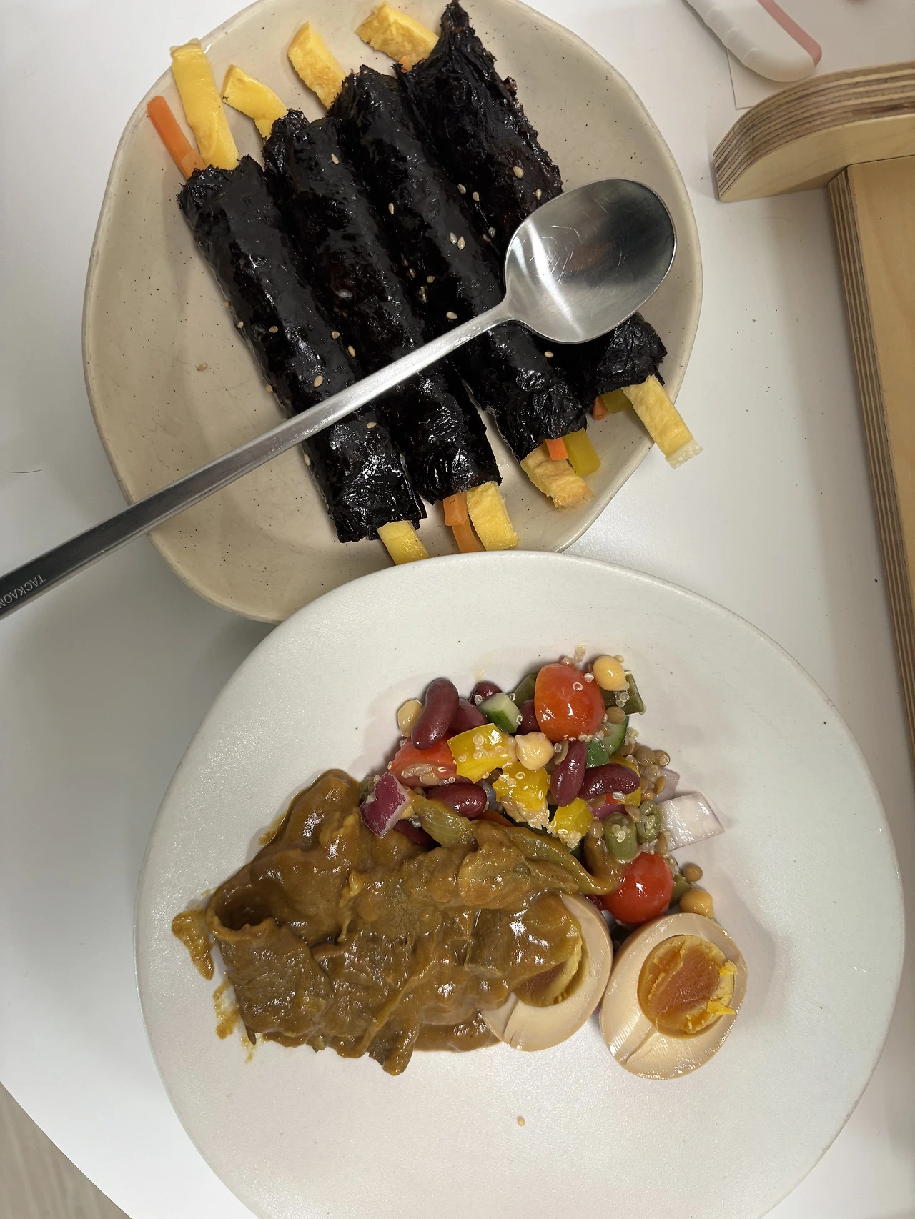 허리 디스크로 응급실 다녀온 다음날 친한 동생이 김밥을 싸왔다. 먹기 편하게 배분해서 줬는데 서서 먹으면서도 너무 고맙고 감동이었다.