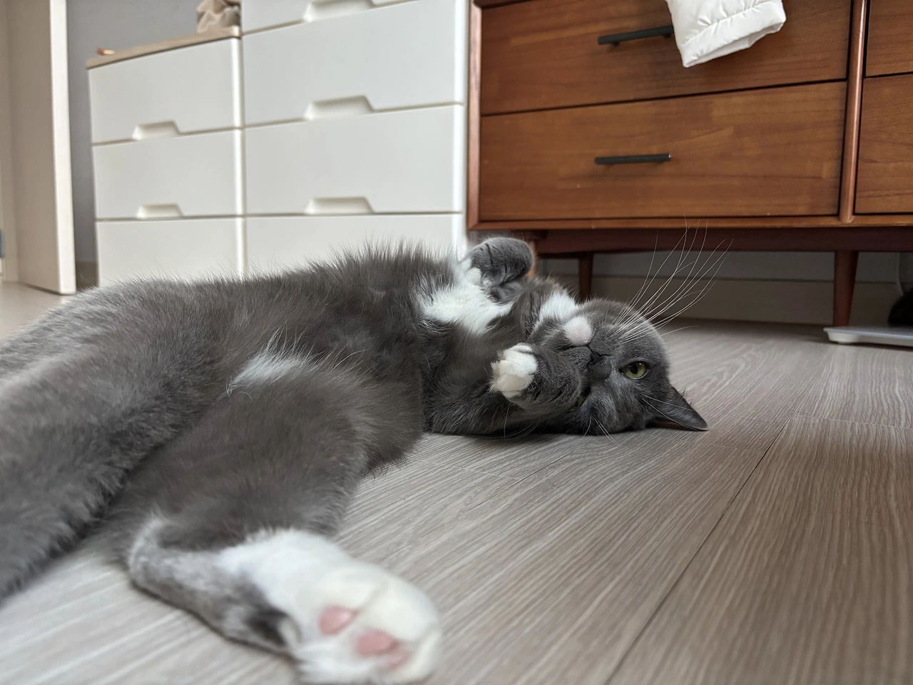 아침에 눈을 뜨면 내가 일어난 것을 귀신같이 알고 배를 까고 애교를 부린다.