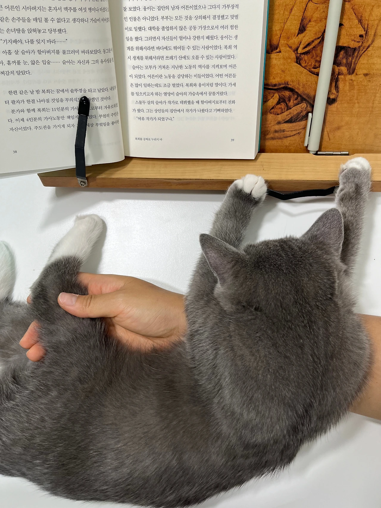 제제는 전남편과 별거하기 시작한 작년 3월에 데려온 고양이다. 브리티쉬 제제와 먼치킨 제니를 함께 데려오게 되었다. 고양이 관련 네이버 카페에서 알게 되어 경기도까지 4시간 넘게 운전해서 데려온 아이들이다. 마음이 서럽고 힘들었을 때 동물을 통한 위로가 간절했다. 둘 다 생후 2개월 때 데리고 왔는데 제니는 짧은 다리와 겁이 많고 눈이 유독 큰 소심한 성격의 고양이고, 제제는 러시안 블루를 닮은 회색 고양이인데 세심하고 착한 개냥이이다. 특히 제제는 처음 왔을 때부터 지금까지 나를 향한 무한한 관심과 애정을 보여주고 있다. 집에서 어디를 가든 내 뒤를 졸졸 따라오는 고양이라면 상상이 갈까..? 제제는 4마리 중에 가장 나와 마음이 통하는 고양이이기도 하다. 별거 중일 때 아이를 재우고 거실로 나올 때면 제제는 내 등과 배 어깨까지 올라타서 얼굴을 비비며 골골송을 불렀다. 제제는 신이 나를 위로하기 위해 보내준 선물이었다. 지금은 불면증 때문에 잠자기 2시간 전쯤 약을 먹는데 4마리 고양이 중 제제는 꼭 같이 데리고 안방으로 간다. (아직 아이가 어려서 다른 고양이들은 밤에 따로 자는 중이다.) 안방 문 닫기 전에 “제제~ ” 부르면 “야옹~” 대답하며 꼬리를 지팡이 모양으로 세우고 총총총 안방으로 들어온다. 고양이가 부르면 오는 존재였던가. 매번 감탄하면서. 여건이 허락돼서 데려온 고양이들이 우리 가족과 잘 지내고 잘 맞으니 더할 나위 없이 기분이 좋다. 새벽에 잠에 설치다가 눈을 뜨면 그윽한 눈길로 바라보는 제제가 보인다. 때로는 나를 핥고 때로는 내 귀에 얼굴을 묻고 골골송을 부른다. 내 팔에 기대어 나처럼 옆으로 돌아누워 자고 있기도 하다. 핸드폰을 보는 대신 제제를 쓰다듬다가 체온에 기대어 다시 잠에 드는 요즘, 나를 향한 제제의 사랑에 미치지는 못하지만 언젠가는 제제를 기념하며 보답하는 글을 쓰고 싶었다. 이렇게 많은 사랑을 줘서 참 고맙다고. 넌 정말 나에게 선물 같은 존재라고.