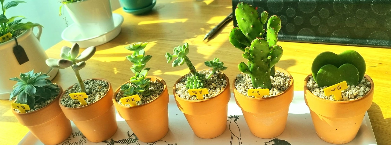 둘러보기만 해야지 하고 들렀는 데 그간 그나마 키우기 쉽다는 선인장마저 저 세상으로 보냈었고 식물을 키워내는 능력이 1도 없는 사막 마음의 나를 끌어당기는 친구들이 그중에 있어서 뜻하지 않게 그들과 동거하게 되었다.