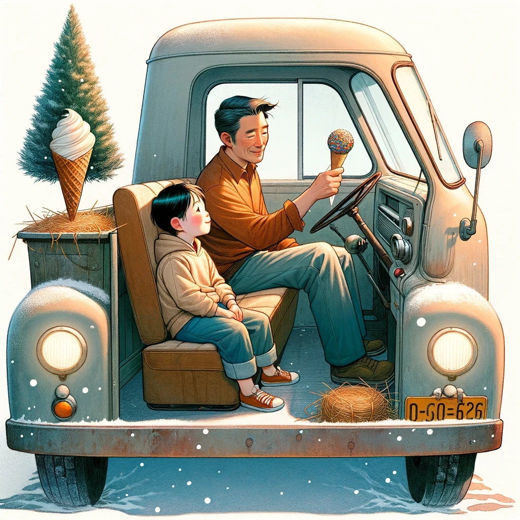 수많은 아이스크림 상자를 싣고 달리는 낡은 냉동 트럭 안 조수석. 어린 나는 그곳에 앉아 아버지의 말에 귀 기울이곤 했다. 아버지를 유난히 좋아했던 어린 나는 조수석에 앉아, 일하시는 아버지를 따라다녔다. 아이스크림 도매업을 하셨던 아버지는 슈퍼마켓 주인과 아이스크림 납품 가격을 놓고 10원 단위로 흥정하시고는 했는데, 차 안에서 작은 돈, 10원의 소중함과 삶의 치열함에 대해 말씀해주시곤 했다. 그때가 6살, 7살 정도였던 것 같다.