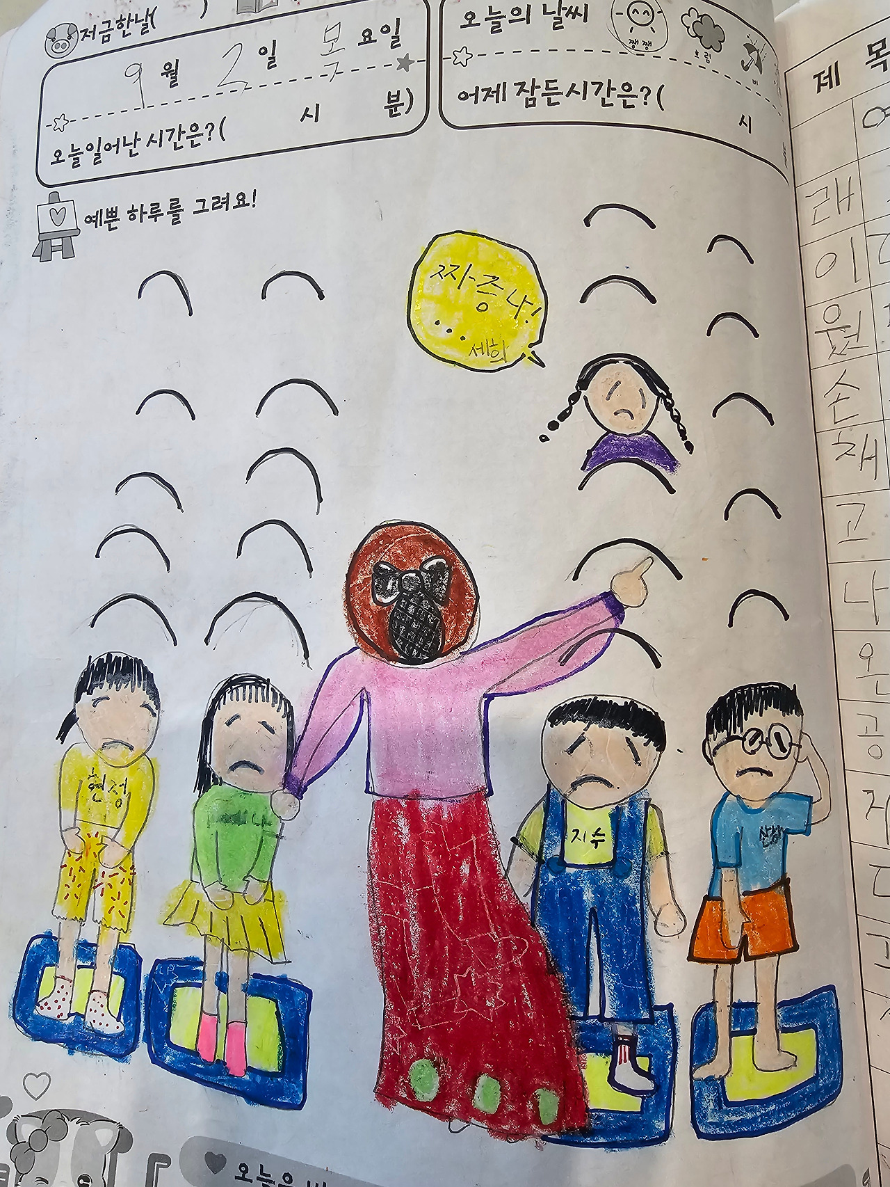 ‘그 많은 아이들 엄마 아빠가 뭐 다 오랴?’ 했는데 나중에 운동장 한편에 학부모들이 꽉 차 있어서 깜짝 놀랐지. 그래도 엄마가 입학식엔 처음부터, 집에서부터 같이 갔지. 희담이도 기억하지?