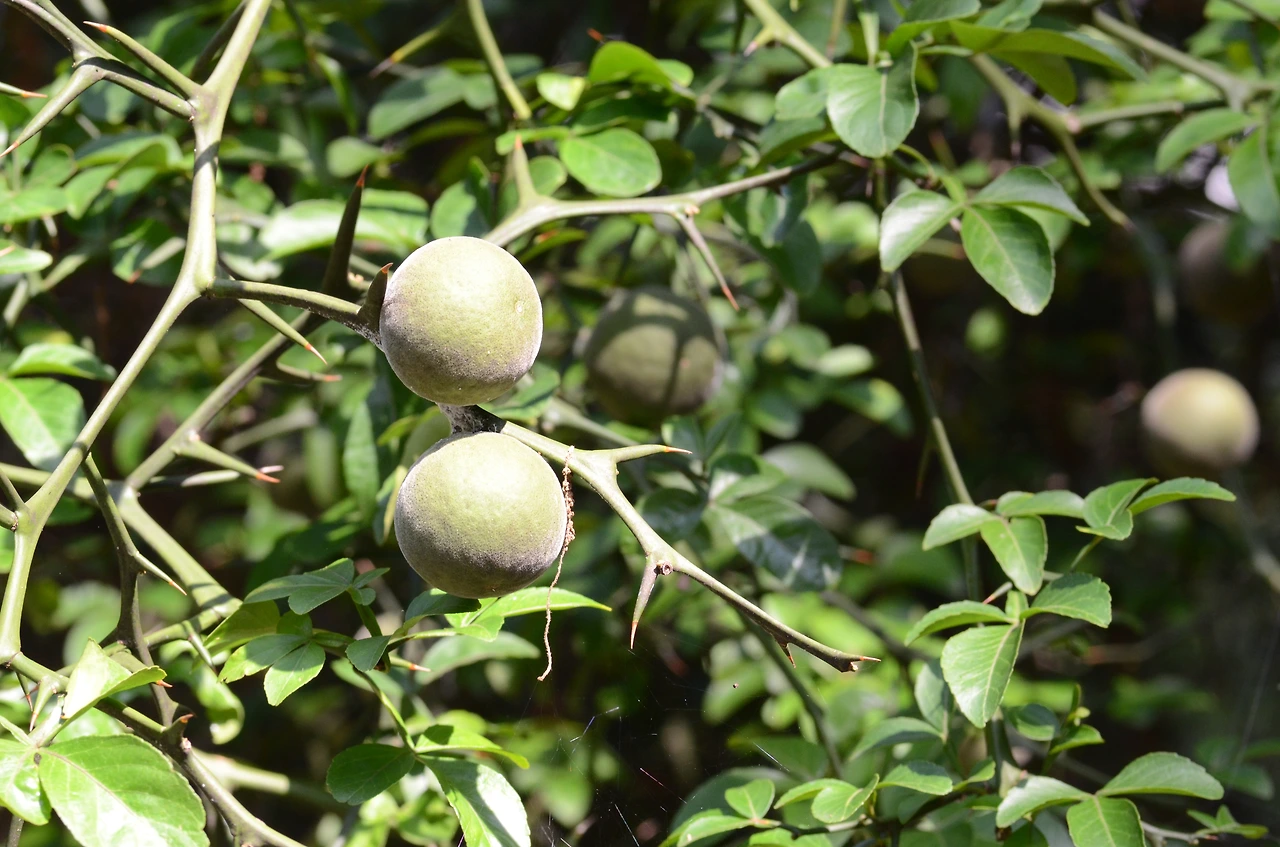 하얀색꽃은 향이 진하며 멀리 퍼지고, 노란색으로 열리는 탱자 열매는 약재나 피부 미용에 이용했다