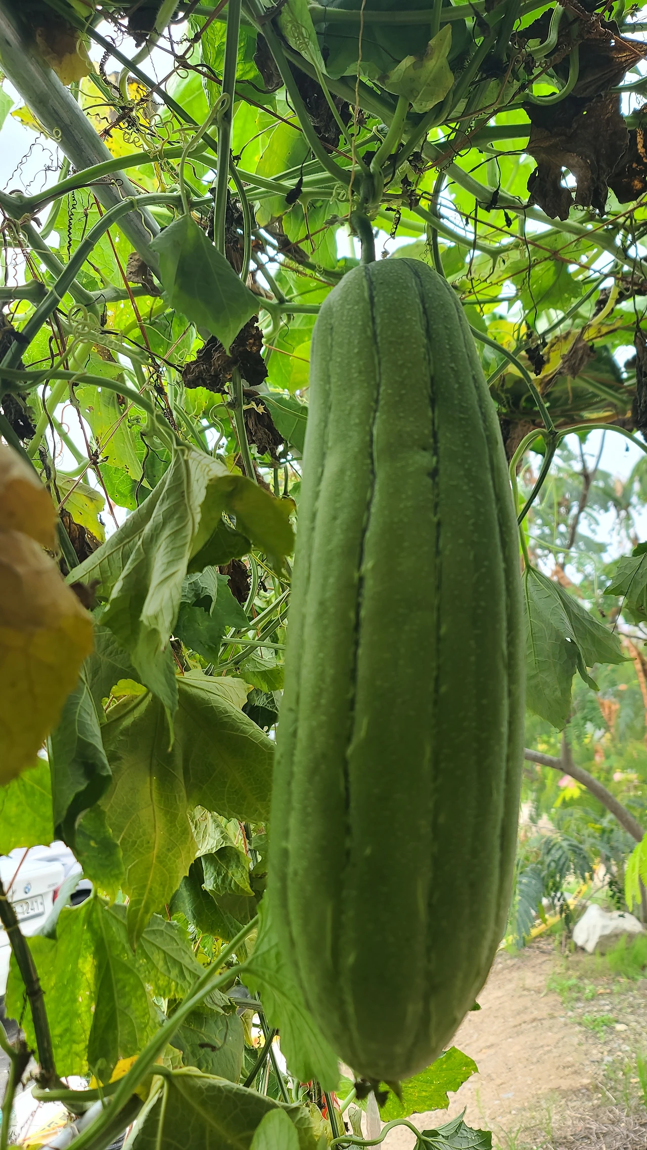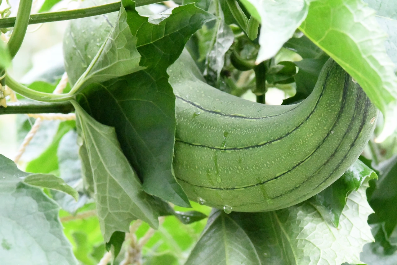 열매는 큰 애호박이나 오이처럼 생겼고, 처음에는 열매가 자라면서 단단하고 무거워지지만 익어가면서 무게가 가벼워지고 말랑말랑해진다.