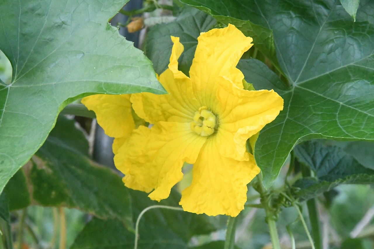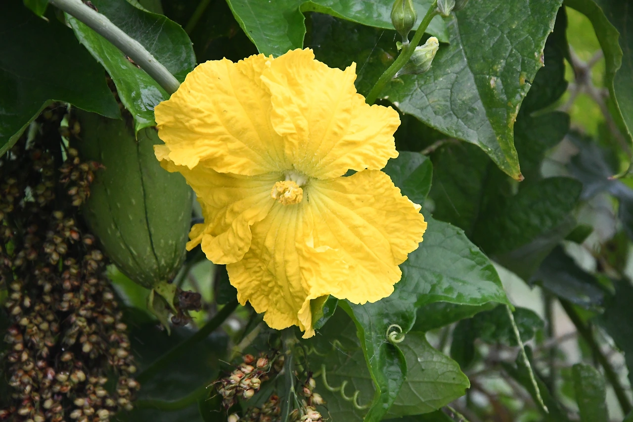 노란 꽃이 피는 박과의 한해살이 덩굴식물, 수꽃은 봉오리 무더기에서 하나 피고는 다음 꽃이 피면 스스로 떨어진다.