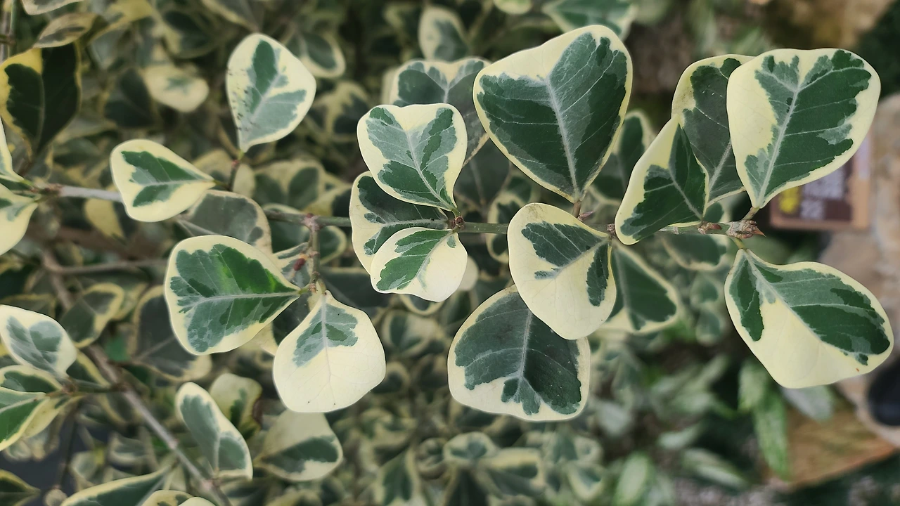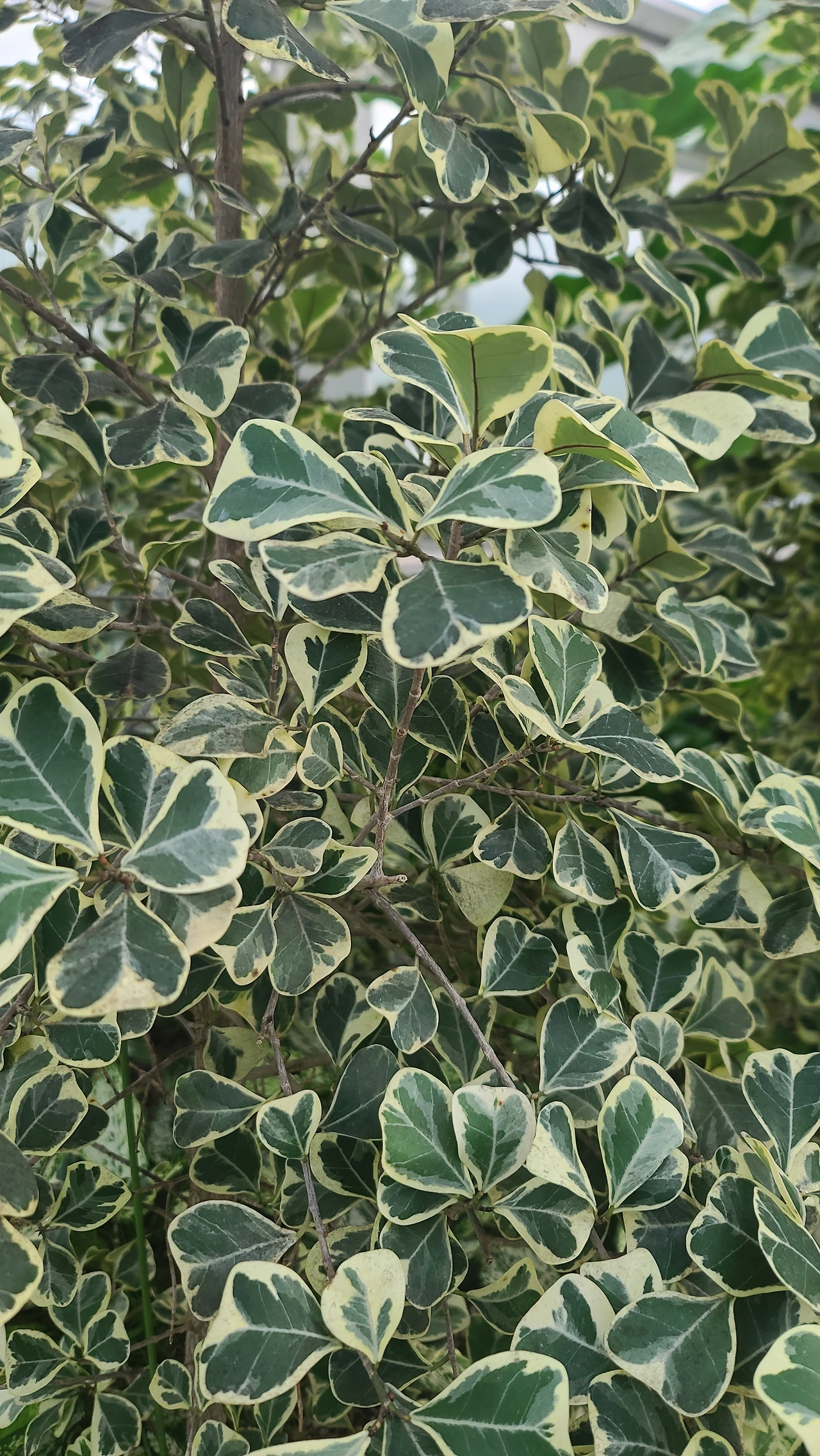 심장 모양의 잎이 녹색과 흰색이 부드럽게 어우러져 자라는 공기 정화 능력을 가지고 있는 고무나무 종류로 잎이 풍성하고 화려하다.