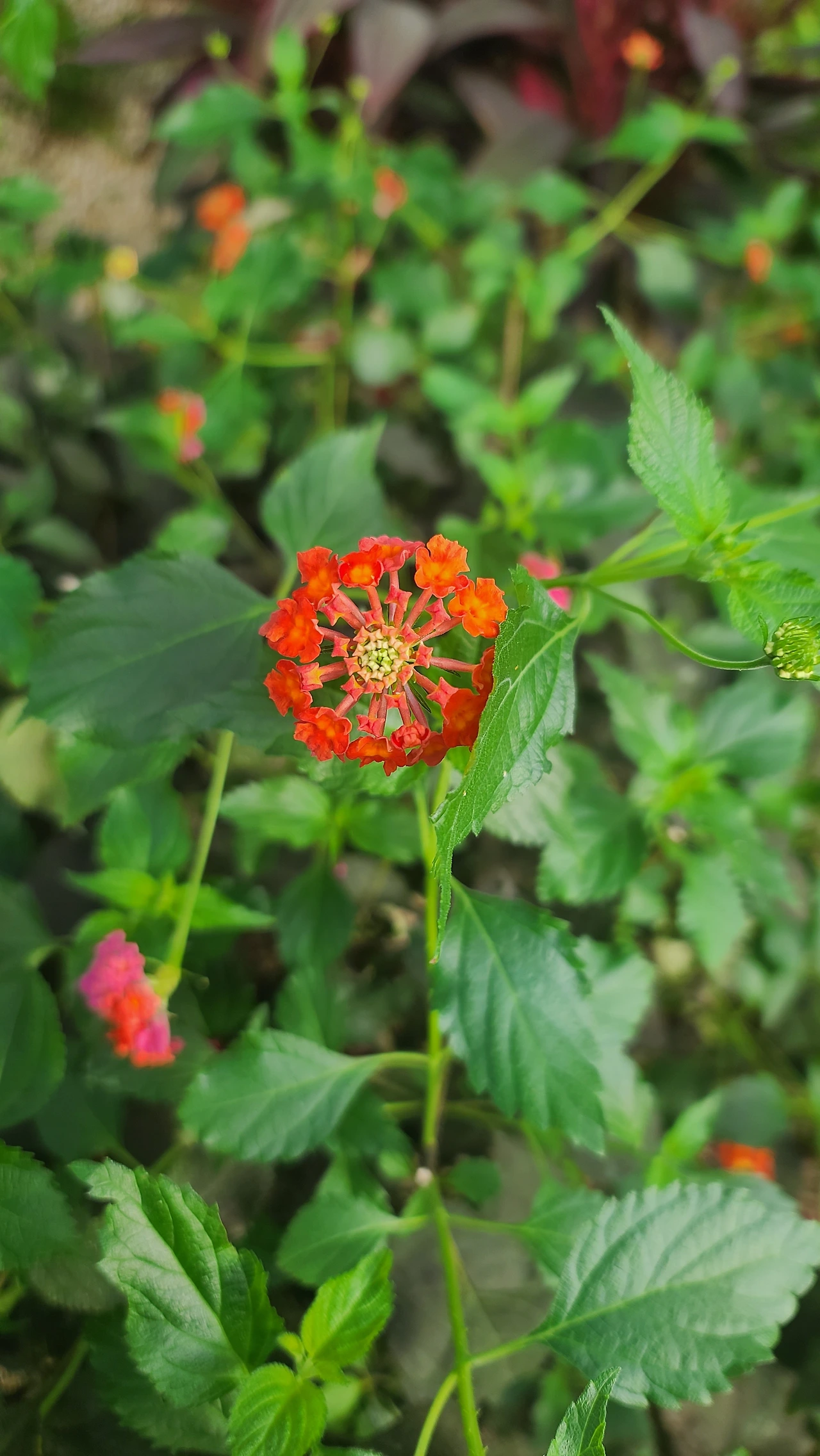 꽃의 색은 황색, 주황색, 분홍색, 적색 등 다양하며, 잎의 끝은 뾰족하며, 잎 주변에는 거치(鋸齒)가 있으며 조금 두껍고 주름이 있다.