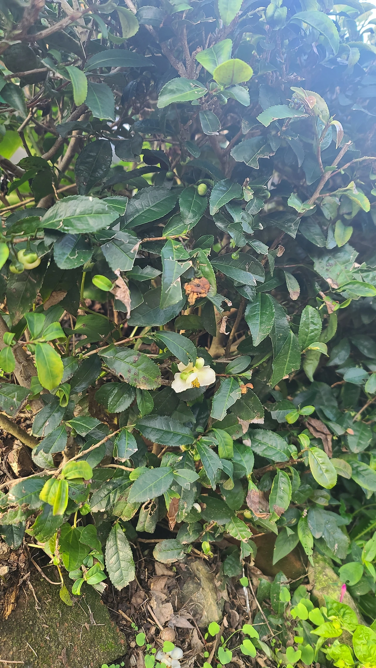 꽃과 열매가 같이 열려 있어서 실화상봉수(實花相逢樹)라고 하며, 잎은 길게 둥글고 질기며, 겉면은 평평하고 미끄럽고 광택이 난다.