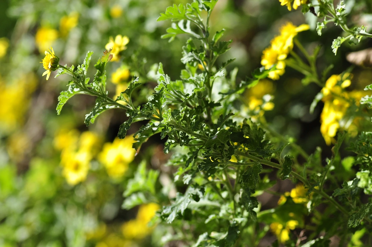 황국(黃菊), 진국(眞菊), 줄기 윗부분에 노란 혀 모양의 꽃(설상화)이 많고, 하얀색 꽃도 핀다.