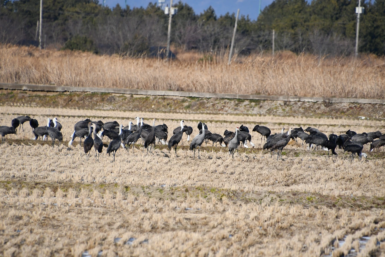 비교적 키가 작은 두루미의 일종으로, 안쪽 둘째날개깃이 길게 뻗어 꼬리를 덮고 있고, 얼굴, 멱, 목의 윗부분은 흰색이고 목 아랫부분은 석판 회색이다.
