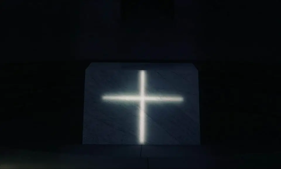 처음 그가 설계한 집을 사람들에게 선보일 때, 빛을 이용해 재단에 십자가 모양의 빛을 고이게 하는 기능을 작은 미니어처로 시연합니다. 카메라는 의도적으로 빛이 십자가 모양으로 맺히는걸 보여주지 않고 인물들의 감탄하는 반응만 담습니다. 그리곤 의도적으로 숨긴 그 중요한 장면을 클라이막스에서 보여주어 그 감동을 더했습니다.