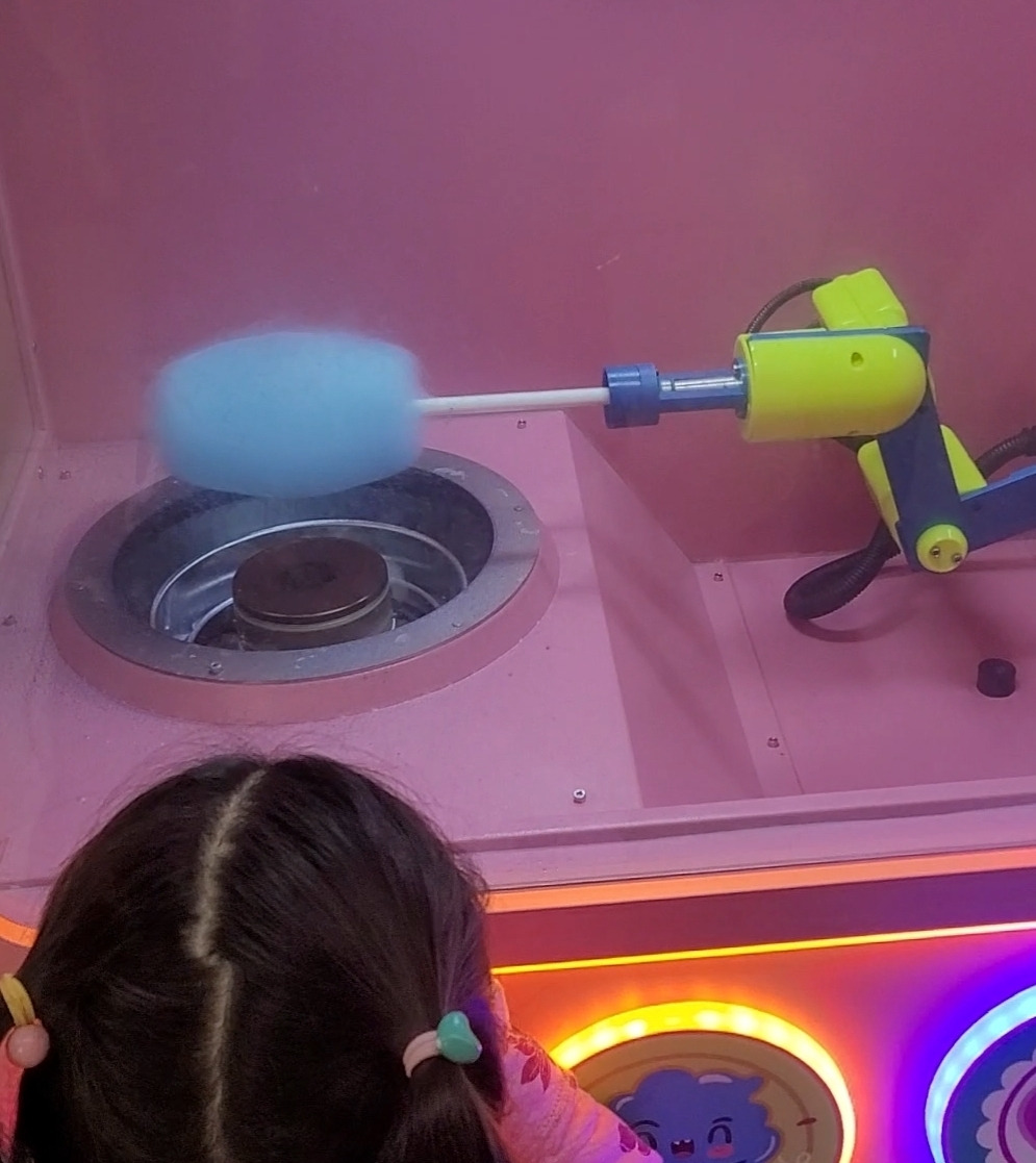 솜사탕 자판기. 솜사탕이 만들어지는 동안 아이들은 눈을 못 뗀다.