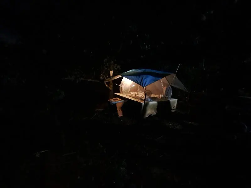 감나무 그늘 아래의 평상에 모기장 텐트를 펼쳤어. 이슬을 피할 차광막을 덮고서 꿈꾸던 여름밤을 즐기는 나날이었지.