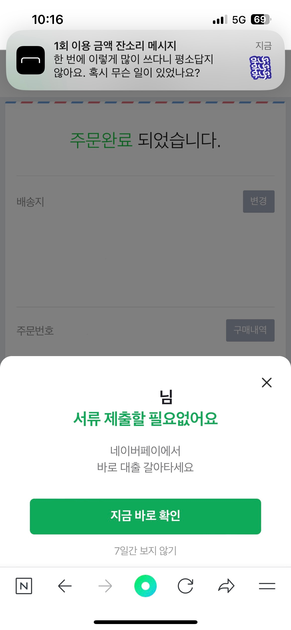 일정 금액을 결제하면 결제 내역 알림과 함께 소비 잔소리 알림이 뜬다. 다만 아쉬운 부분은 나의 경우 결제를 하게 되면 기본으로 결제 내역 알림과 결제 완료 안내 메일 알림이 뜨는데 여기에 소비 잔소리 알림까지 뜨니 결제만 하면 3개의 알림이 기본으로 온다. 알림이 한번의 결제로 3개가 쌓이니 피로도가 높아져서 현재는 잔소리 알림 기능을 꺼둔 상태.. 소비 잔소리 알림 서비스를 사용 시 간략한 결제 내역을 잔소리 알림 서비스 내 노출하여 피로도를 줄이는 방법도 괜찮은 것 같다.