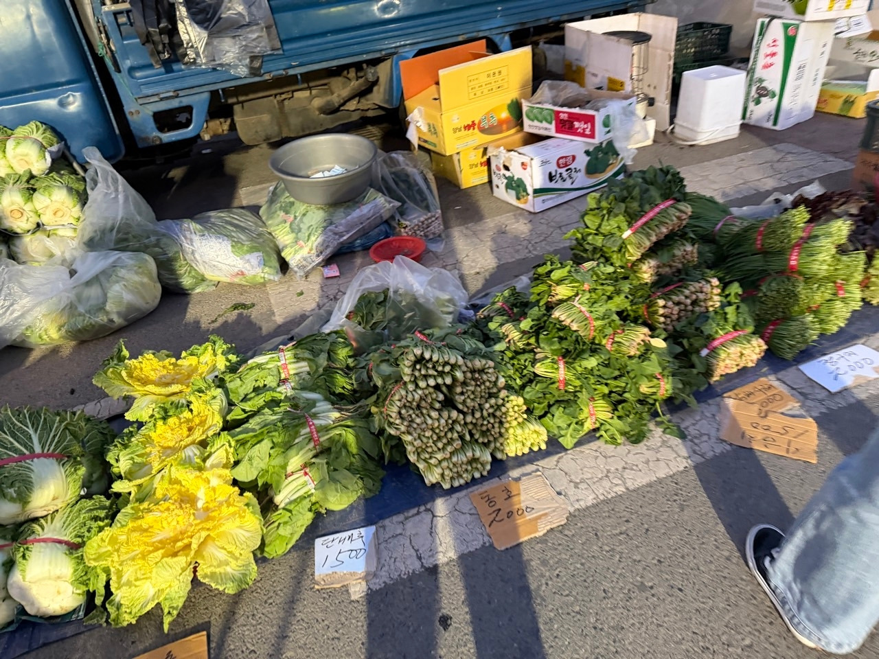 대형 마트에서는 항상 깔끔하게 포장된 채소만 보다가 이렇게 흙이 묻은 채소들을 보니 오히려 더 신선하게 느껴졌다.