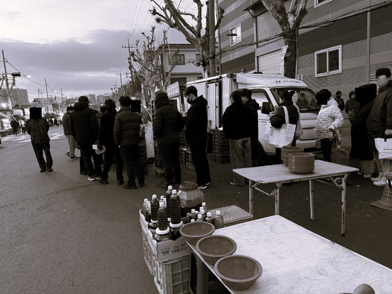 사람들은 조용히 기다리고 있었다. 누군가는 장바구니를 들고 있었고, 누군가는 작은 손수레를 끌고 있었다.