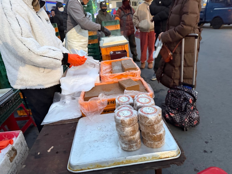 커다란 판 위에서 막 만든 두부를 잘라서 판매하고 있었는데, 김이 모락모락 올라오는 모습이 멀리서도 보였다. 두부 냄새가 은근하게 퍼졌다.