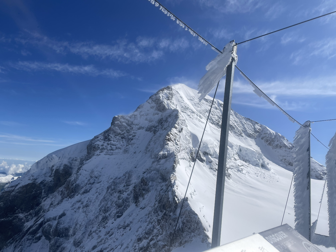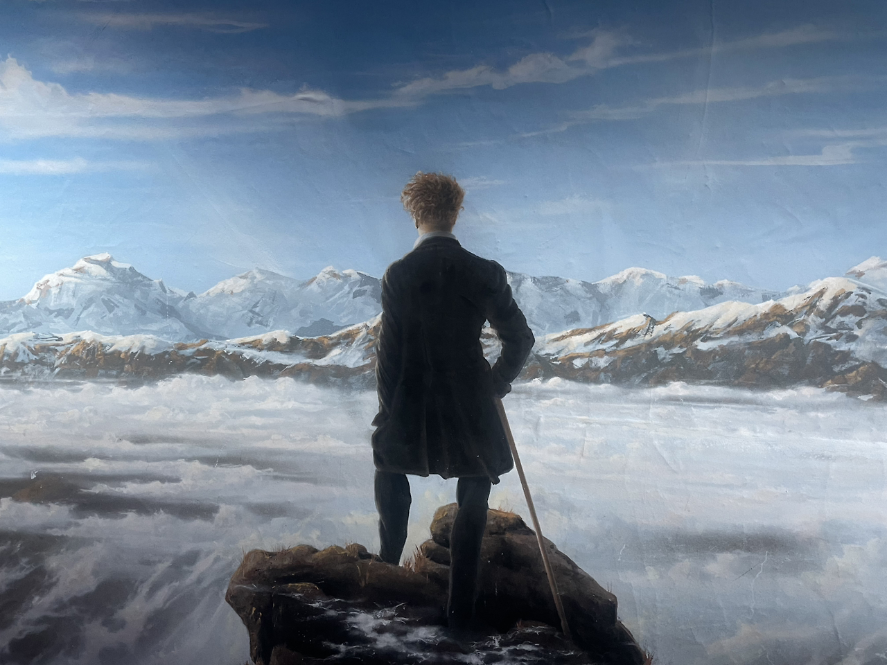융프라우의 얼음궁전을 통과해 지나가다가 한쪽 벽에 미디어 아트 형식으로 전시된 카스파 다비드 프리드리히(Kaspar David Friedrich)의 안개바다위의 방랑자(Der Wanderer über dem Nebelmeer)를 보고 놀라움과 반가움을 동시에 느끼며 걸음을 멈춰섰다. 인간은 웅대한 자연 앞에서 불안을 느끼며 고뇌하며 방랑하는 작은 개체일 뿐이라는 깨달음을 주는 것 같았다. 이 그림은 리하르트 슈트라우스의 교향시 <짜라투스트라는 이렇게 말했다>(Also sprach Zaratustra) 레코드 판의 표지에도 실린 바가 있다. 여기에서 마주하고 있는 바다 위에 떠있는 안개의 모습이 눈으로 뒤덮인 과거의 융프라우 주변 산들과 비슷한 느낌을 주는 것 같아서 여기에 있는 것이 아닐까 생각해 보았다.
