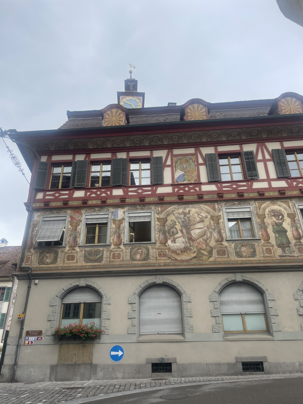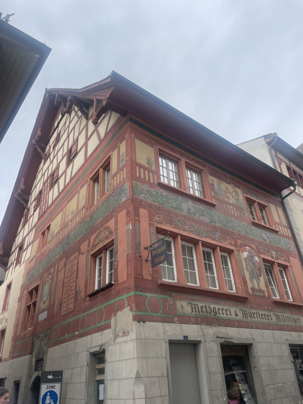 그 다음에 간 <슈타인 암 라인> 마을은 작으면서도 예쁘고 고풍스런 분위기를 그대로 간직한, 아기자기하면서도 조용한 마을이었다. 건물 벽들에 그려진 프레스코화가 마을의 오래된 역사를 조용히 전해주고 있었다. 작은 마을에 드문드문 있는 기념품 가게에서 뭔가 건져보려고 했지만 내가 여행지에서 사곤 했던, 냉장고에 붙이는 마그네틱 하나도 10프랑이 넘는 액수여서 그 가격에 마그네틱 하나는 왠지 비싼 느낌이 팍 오면서 포기하고 말았다. 작은 레스토랑, 카페, 베이커리 등에 앉아서 한가하게 시간을 보낼 수 있었다면 좋으련만 그건 어차피 불가능한 일이었다.
