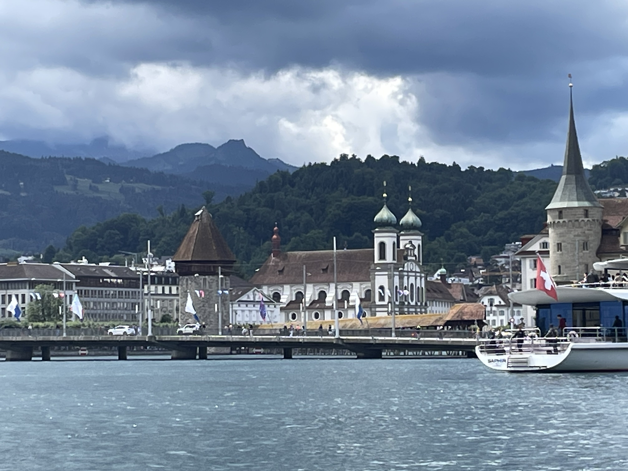 루체른에 다달았을 때는 조금전과는 달리 비행기에서 품었던 기대에 약간씩 금이 가기 시작했다. 루체른의 모든 것은 여전히 아름다웠지만 어딘지 모르게 도시화되고 번잡해진 풍경이 다소 눈에 거슬렸다. 내 마음 속에 그리움으로 남아있던 카펠교(Kapellbrücke)는 로이스 강을 가로지르면서 다리 양옆에 꽃송이들을 늘어뜨리며 여전히 예쁜 모습이었지만 그 다리를 둘러싼 주변의 풍경은 예전처럼 고즈넉하고 아늑하고 한번쯤 살아보고 싶던, 꿈속에도 나타날 법한 그 모습이 아니었다. 유람선을 타고<네개의숲을품은호수>(Vierwaldstätter See)를 둘러보았을 때도 너무나 많이 변해버린 주변 풍경으로 인해 내 마음에는 뭉게구름처럼 아쉬움이 피어올랐다. 10년이면 강산도 변한다지만, 살아 오는동안 오랜만에 만난 풍경 앞에서 입을 벌리고 와우 이렇게 변하다니, 알아볼 수가 없네, 하며 놀란 적이 숱하게 많았다고 하지만 루체른의 달라진 모습은 못내 아쉬워서 속이 아플 정도였다. 호수를 둘러싼 마을 속에 보이는 현대적 건물들의 모습과 호텔처럼 보이는 큰 건물들, 좁은 면적 속에 빽빽하게 서 있는 건물들의 모습은 그 옛날에 한가롭게 넓은 푸른 초원 속에 하나 둘씩 자리했던 스위스 전통 가옥과 이따금씩 보이던 작은 교회들과 단정하고 예쁜 서양식 2층집들이 있던 그림같던 모습과는 비교도 할 수 없을 정도였다. 눈을 감으면 떠오르던 내 기억속의 풍경, 그 치명적으로 아름다왔던 풍경들은 어디로 간 것일까? 그것들이 결국 이렇게 변해 버리다니! 세월이 흘렀고, 수많은 사람들이 찾아오고. 모든 것은 상황에 따라 변한다는 사실, 나는 달라진 현실을 인정하는 수밖에 도리가 없었다. 그럼에도 불구하고 루체른은 호수의 파란 물과 세월의 더께가 앉은 목조다리의 정겨운 모습과 골목골목의 예쁜 집들과 더불어 또 다른 아름다움을 연출하고 있었다. 루체른이 처음인 내 친구 둘은 연신 루체른이 예쁘다며 찬사를 아끼지 않았다. 나도 그말에 기꺼이 동의하는 바다. 호수를 낀 도시들은 예쁠 수밖에 없다는 것이 나의 생각이다. 더더군다나 알프스의 눈 녹은 물들이 모여서 이루어진, 산으로 둘러싸인 스위스의 호수옆 도시들이야 말해 무엇하랴. 그중에서도 예쁘기로 소문난 루체른임에야!!