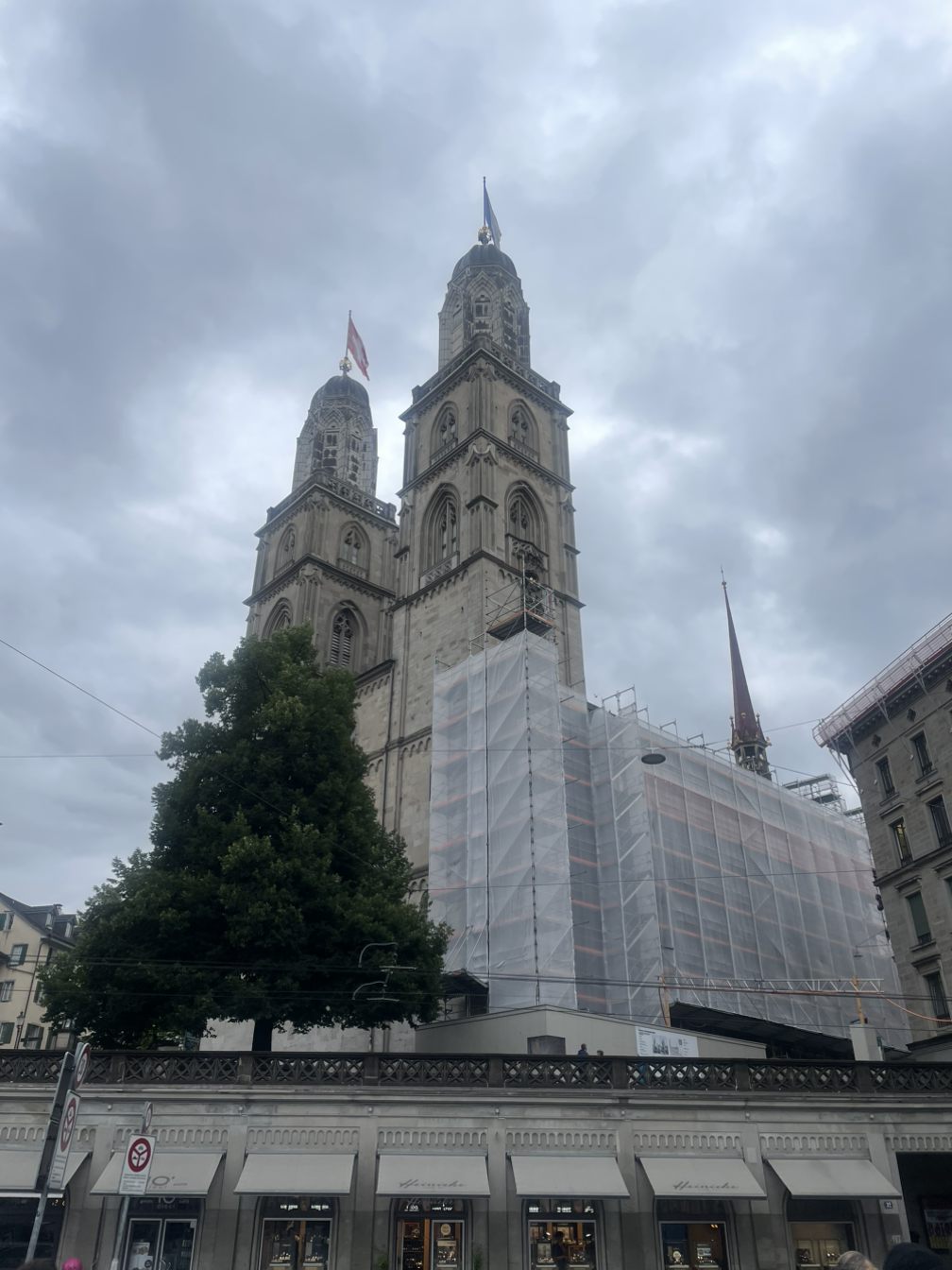<슈타인 암 라인> 마을을 떠나 이번에는 취리히로 갔다. 그런데 실로 오랜만에 도착한 취리히에서는 내가 예전에 갔던 거리가 아닌 전혀 다른 장소만 방문해서 별다른 감회가 없다. 갈곳을 내맘대로 정하는 자유여행이 아니기 때문에 보여주는 곳만 봐야하는 여행에 적응을 해야만 했다. 단지 취리히가 이번에는 대도시의 느낌만 강하게 풍길 뿐 정감있는 모습으로 다가오지 않아서 유감이었다. 내가 예전에 느꼈던 취리히는 도시를 감싸는 거대한 호수의 물결이 찰랑찰랑하며 사람들에게 말을 거는 듯한 낭만적 분위기가 감싸고 돌았는데 말이다. 옛날의 취리히는 대도시와 커다란 호수가 멋지게 앙상블을 이루고 있어서 무엇 하나 아쉬움 없이 질 높은 생활이 가능한 장소로 보여서 나는 한숨을 쉬며 부러움과 질투를 느꼈더랬다. 40년 전의 한국의 경제상황은 지금과는 엄청난 차이가 나서 잘 사는 나라인 스위스에서 보이는 것 모두에 부러움이 일곤 했었다. 니더도르프(Niederdorf)거리 곳곳에 보였던 교회와 성당의 커다란 뾰족 첨탑들이 과거의 분위기와 좀 닮아 있긴 했는데 대성당의 한쪽 첨탑이 수리 중이어서 들어가 보진 않았다.