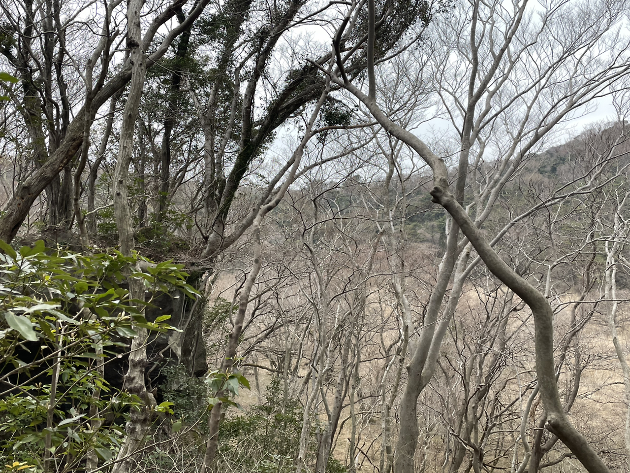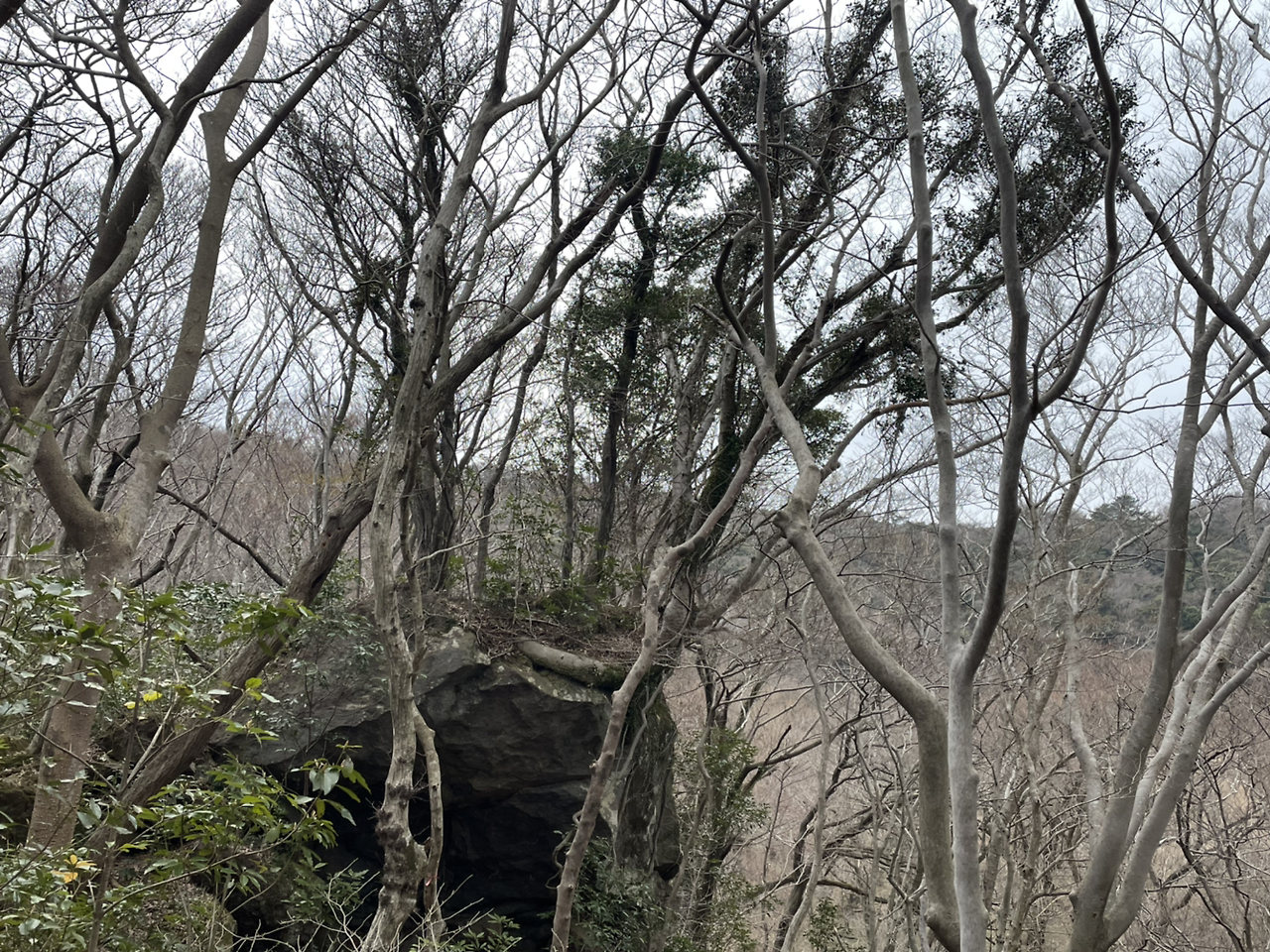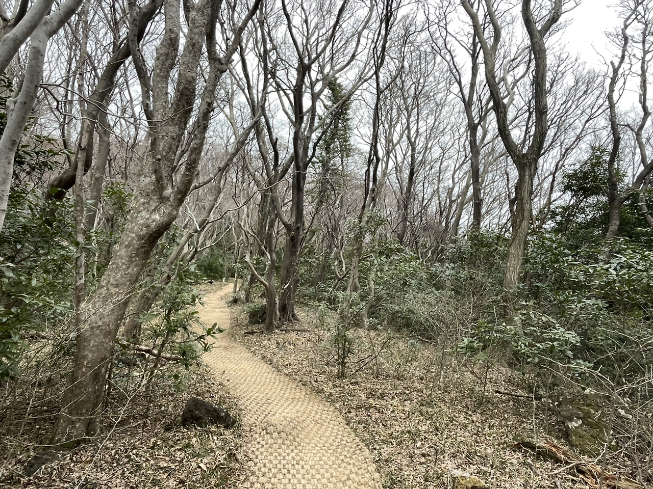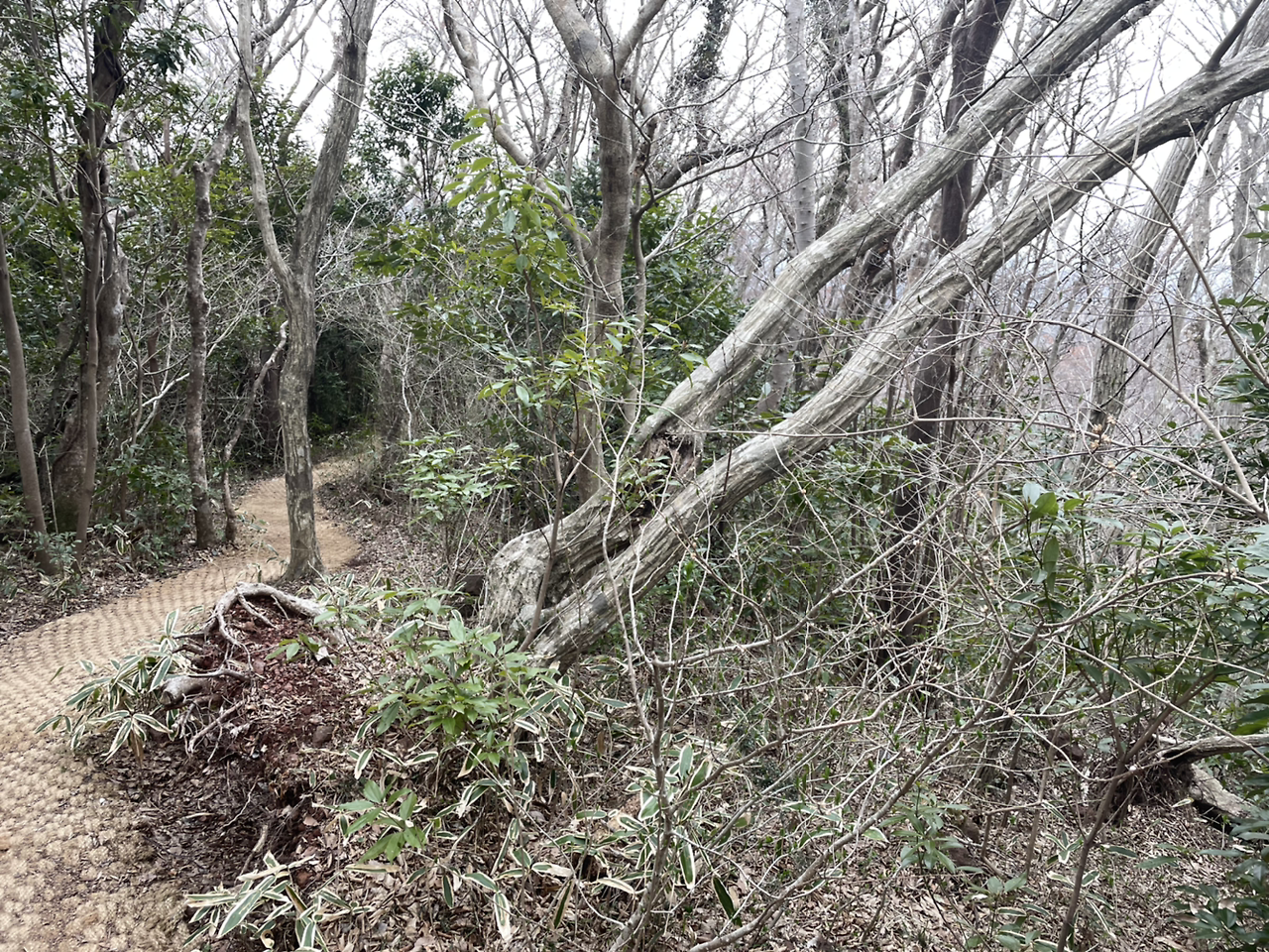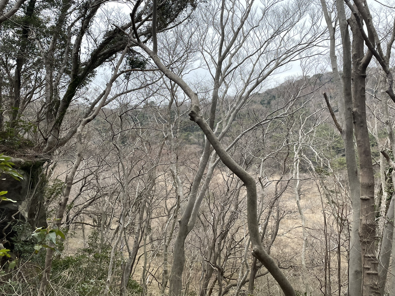 그 다음부터 이어진 길에는 바닥에 굵고 두꺼운 야자매트가 깔려 있었으므로 완만한 경사로를 올라갈 때까지는 힘이 별로 안 들었다. 그런데 내가 어제 유독 나무들에 관심이 많아져서 였는지 아니면 특별하게 붉은오름들의 나무들이 별다르게 보여서 였는지는 모르지만 올라가는 길 양옆으로 특이하게도 신기한 나무들이 많이 보였다. 원래도 제주의 곶자왈 같은 곳을 가면 기기묘묘한 나무들과 바위들이 얽혀있는 모습에 눈을 크게 뜨고 놀라게 되지만 이 붉은오름의 나무들도 곶자왈의 나무들과 별로 다르지 않은 모습으로 특이하고 아름다워서 가다가 중간중간 발을 멈추게 만들었다. 나는 그때마다 귀찮음도 잊고 휴대폰을 꺼내 사진을 찍기에 바빴다. 다른 오름들과 달리 나무들 앞에 나무이름 팻말이 상당히 많이 붙여져 있는 것도 눈에 띄었다. 때죽나무, 참식나무, 산딸나무... 그밖의 더 많은 팻말들이 붙어 있었지만 안타깝게도 내 머리는 그 이상의 이름들은 기억하지 못 했다. 어쨋든 그런 종류의 나무들이 많이 분포된 지역 같았다. 대부분의 오름들(아니 이 말에는 어폐가 있다. 내가 오른 대부분의 오름들이라고 해야 맞다)은 인공조림으로 이루어진 숲들이 많았던 것에 비해 문외한인 내눈에도 이 붉은오름은 천연원시림에 가까워 보였다. 온대와 난대 한대 수종이 다양하게 분포된 원시림에 가까운 숲이라니 !! 그래서 올라가는 길에 훨씬 더 빈번히 주위의 나무들에 눈길이 갈 수밖에 없었다.