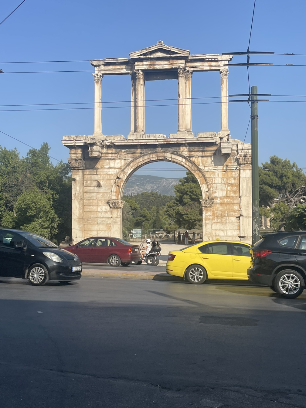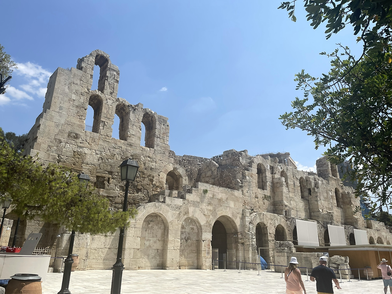 이젠 아크로폴리스 쪽으로 갈 차례였다. 아크로폴리스 입구를 지나는데 입장하려는 줄이 꼬불꼬불 뱀처럼 타래를 틀고 있었다. 우린 어차피 예전에 몇 번 가본 적이 있었고 티켓도 예매해 놓지 않아서 이번만큼은 아크로폴리스 관람을 포기하려고 했던 터라 상관없었지만 그렇게 긴 줄을 보니 포기하길 잘했구나 싶은 생각이 들었다. 아크로폴리스로 올라가는 언덕길은 길이 넓고 한쪽으로는 나무도 우거져 있어서 산책하기 좋은 길이었지만 역시 40도까지 이르는 더운 날씨에는 그것도 다른 상황이 되어버렸다. 연신 흐르는 땀을 닦아가며 겨우 올라갈 수밖에 없었다.