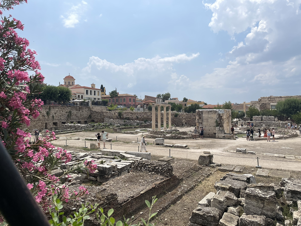 내려가는 길에 있는 로만 아고라는 예전보다 많이 복원된 듯이 보였다. 하드리아누스 도서관 쪽은 여전히 공사지지대가 세워져 있고 복잡한 모양으로 공사즁이었다. 거기서 한쪽 모서리 길가 쪽에 있는 ‘바람의 탑’은 꽃을 흩뿌리고 있는 서풍의 신 제피로스와 비를 떨어뜨리고 있는 남풍의 신 노투스 등이 부조로 새겨져 있는 팔각형의 탑인데 여전히 그 부근에만 가면 내가 직진해서 달려가는 가장 좋아하는 건축물이다. ‘ 호롤로기온‘ 이라 불리는 이 탑은 풍향계, 해시계, 물시계의 역할을 했다고 하는데 펜텔릭 하얀 대리석으로 건축되어 뽀얗고 예쁘고 8면의 부조들도 너무 매력적이다. 탑 꼭대기에는 머리와 상반신은 인간이고, 물고기 모양의 꼬리를 가진 바다의 신 트리톤이 풍향계 역할을 하며 끝이 뾰족한 그의 지팡이가 바람의 방향을 나타냈었다고 하는데 지금은 없어졌다. 나는 다시 이곳에 와서 그를 본 것만으로도 가슴이 뿌듯해졌다.