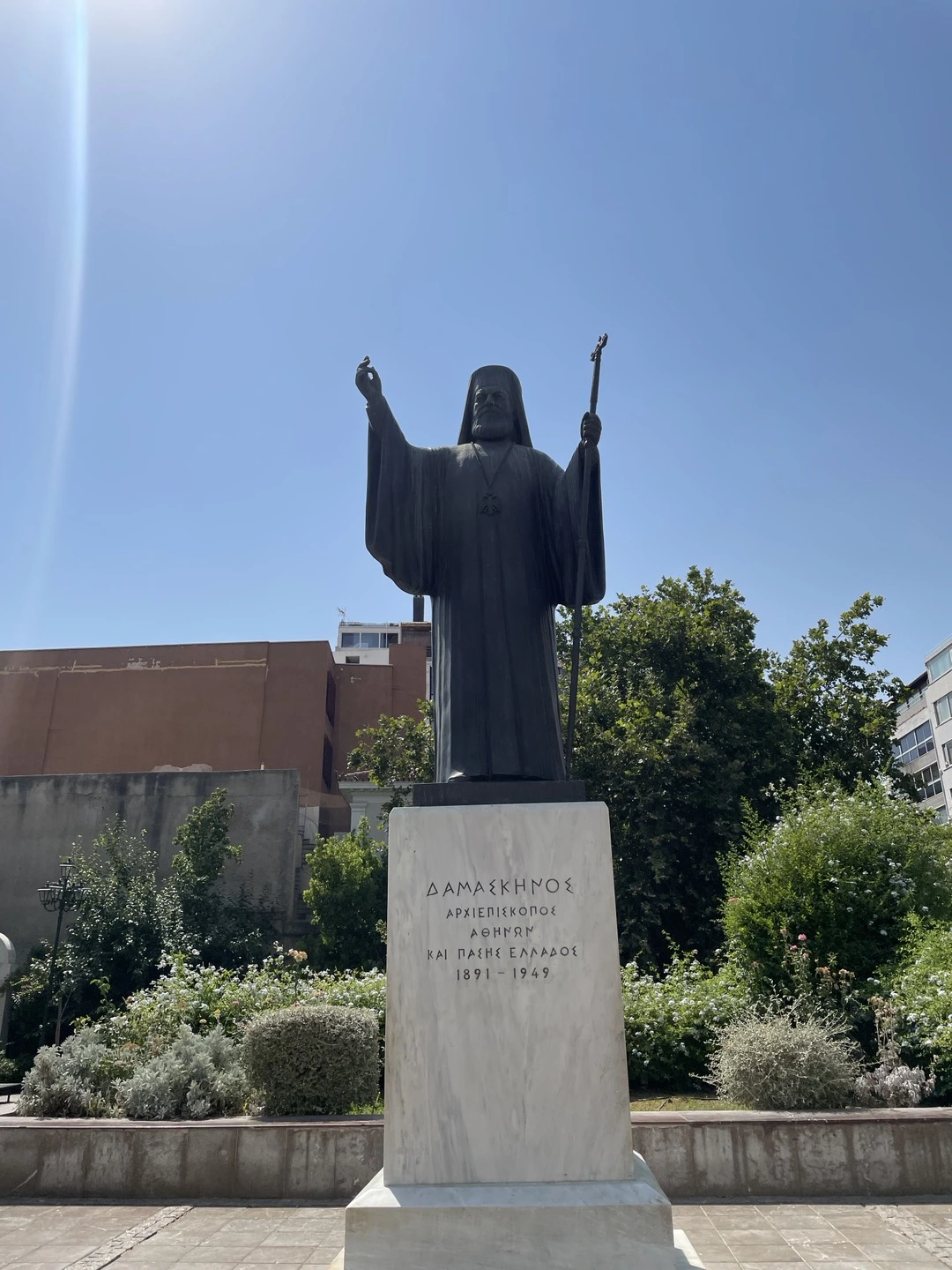 점심을 먹고나서 오모니아 역에서 전철을 타고 모나스티라키 역으로 갔다. 그 근처의 골목을 어슬렁거리다가 벼룩 시장에도 가 보고 가게에 들러 기념품도 사고 옛날에 지나친 적이 있는 근처 대성당엘 가보려는 계획이었다. 이 성당은 성모마리아에게 봉헌된 아테네의 그리스 정교회 주교좌 성당이다. 이곳에 굳이 들리고 싶었던 이유는 촛불을 하나 붙여 놓고 싶어서였다. 냉담자로 지낸지 오래이지만 그래도 어딘가에서 큰 성당이 보이면 꼭 들어가서 둘러보고 촛불을 붙여 그 앞에서 짤막한 기도를 드리고 싶은 것은 어쩔 수없는 인간의 연약함 때문인가. 성당은 메트로폴리스 성당으로도 불리는데 길이 40m. 넓이 20 m, 높이 24m의 통로 세 줄에 돔을 갖춘 바실리카 양식으로 지어진 것이 특징이며 오스만제국 식민지 시절에 순교한 필로테이와 그리고리우스 5세 등 두 성인의 무덤이 그 안에 있다. 대성당이라는 이름과는 달리 성당 내부는 정갈하고 경건했고 아름다웠다.