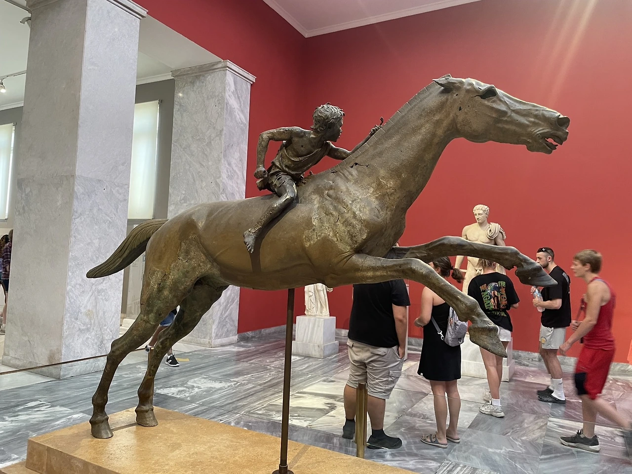 사람들의 눈길을 머무르게 하는 조각상 중에서 또 지나칠 수 없는 것은 B.C. 460년 경에 만들어졌다는 청동의 포세이돈 상이다. 두 팔을 쫙 벌리고 서서 오른 손에는 창을 들고 있었으리라 추측되는 이 조각상은 또 제우스 상이라는 설도 있다. 이 조각상의 형태의 비례와 동작의 정확성에 사람들은 경탄의 눈길을 마지 않는다. 또 현대적인 어느 갤러리에서 본다고 해도 전혀 이상하지 않을 정도로 현대적인 감각이 물씬 풍겼던, 동작의 유연성과 긴장성을 세밀하게 표현한 ‘말을 타고 있는 어린 소년’( Statue of horse and young rider) 상도 발을 멈추게 할 만큼 아름답다.