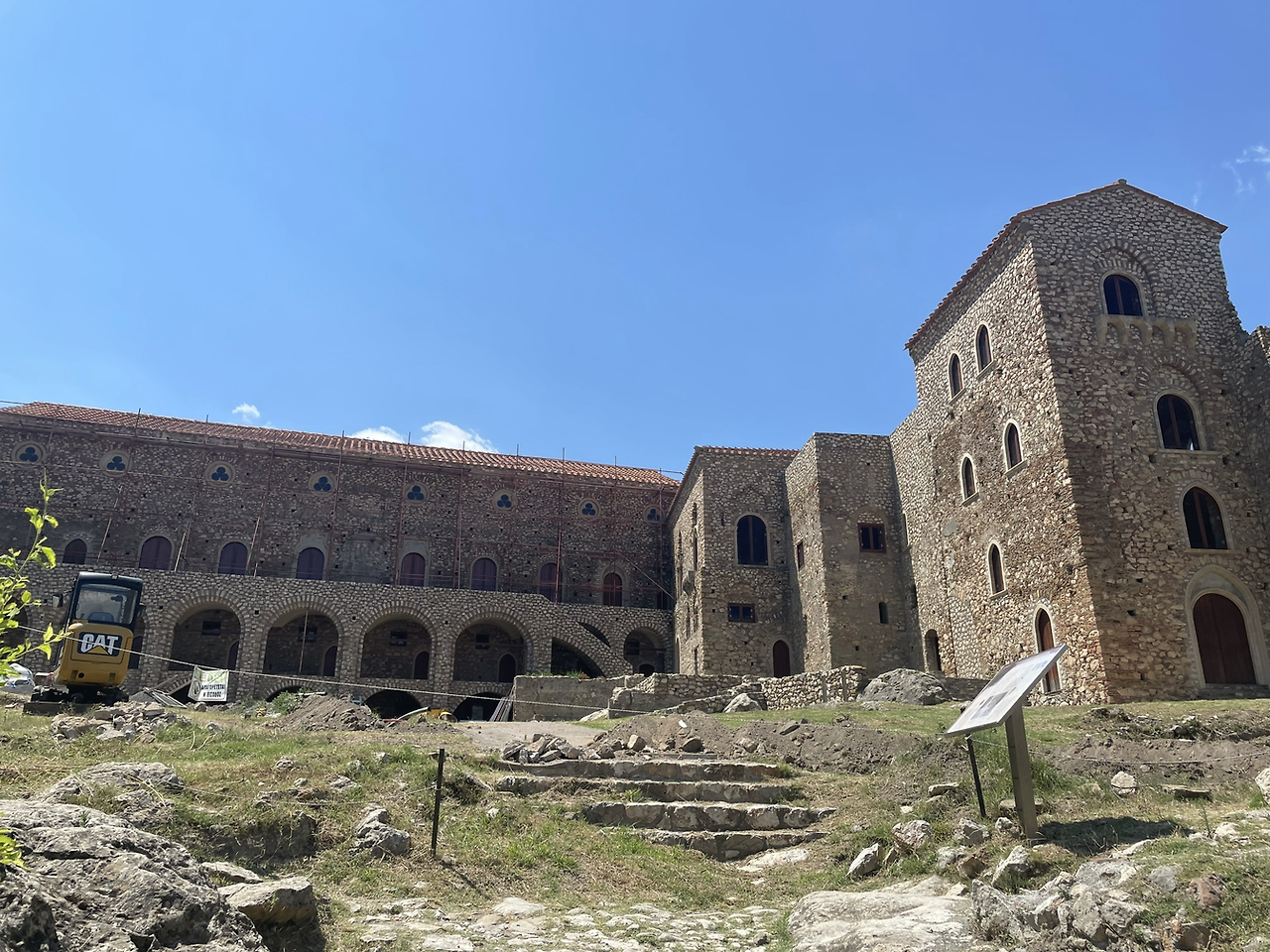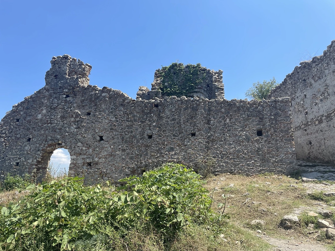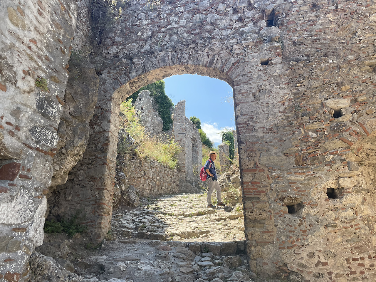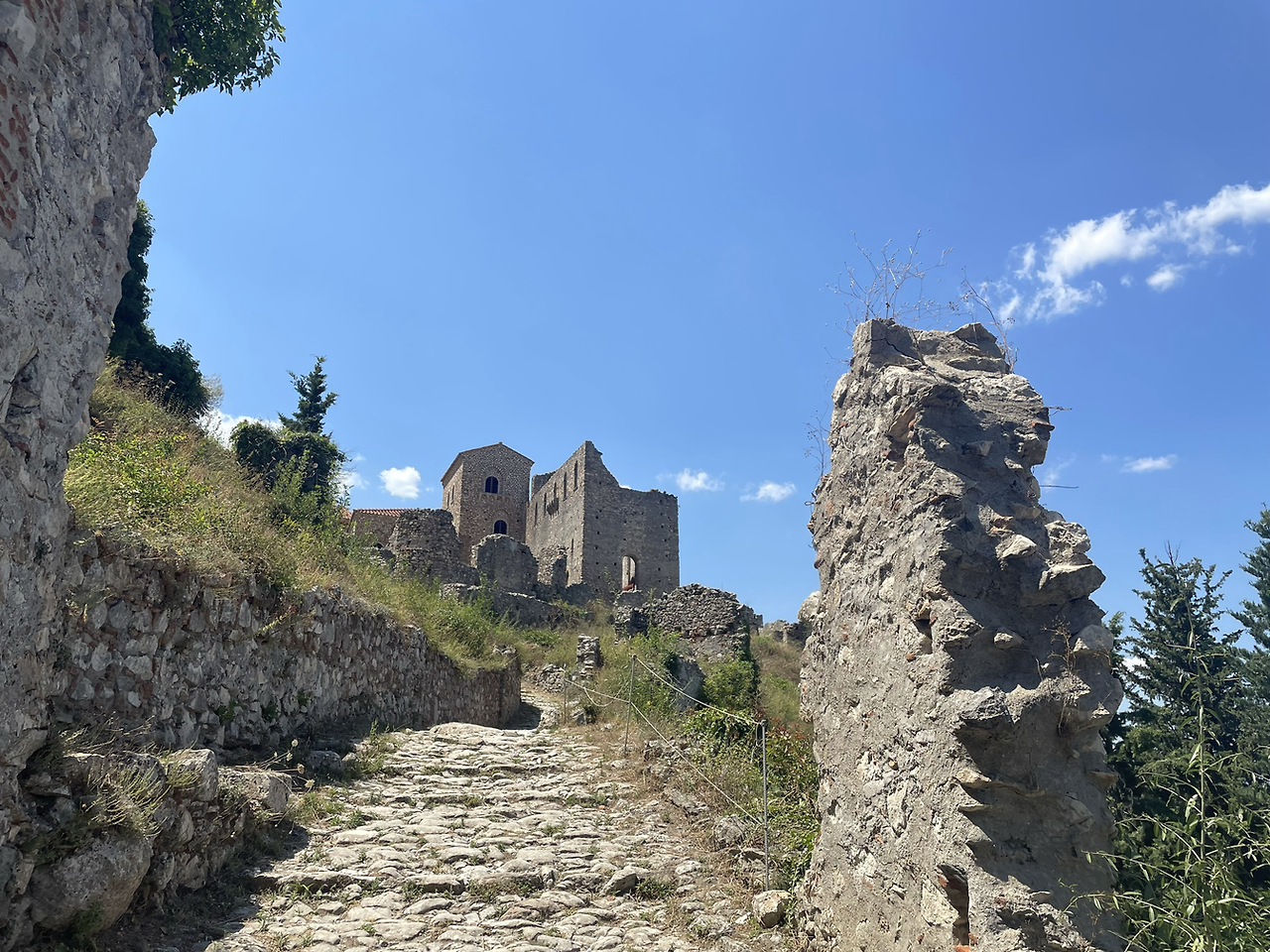 성채 도시는 몇 몇 중요성이 있거나 복원된 건물들 말고는 대부분 허물어지고 파괴된 채 버려진 모습들이었다. 중간중간 걷기 편하게 정비된 길도 나오지만 거의가 험한 길들이어서 자칫 방심하면 꼬꾸라져 넘어질까 무서울 정도로 반들반들하고 미끄러웠다. 그리스의 길들에는 대부분 돌들이 깔려있지만 어떤 길들은 좋은 대리석으로, 어떤 길들은 다듬어지지 않은 싼 대리석으로, 또 어떤 길들은 그냥 주위 산에서 집어 왔을 듯 싶은 평범한 돌로 깔려 있다, 이 성채의 길들은 마지막 후자에 속한다. 근데 이런 길들의 공통점은 모두 미치도록 미끄럽다는 것이다. 비탈진 곳에서는 방심은 금물, 미끄러지기 십상이라 항상 조심하지 않으면 안된다.
