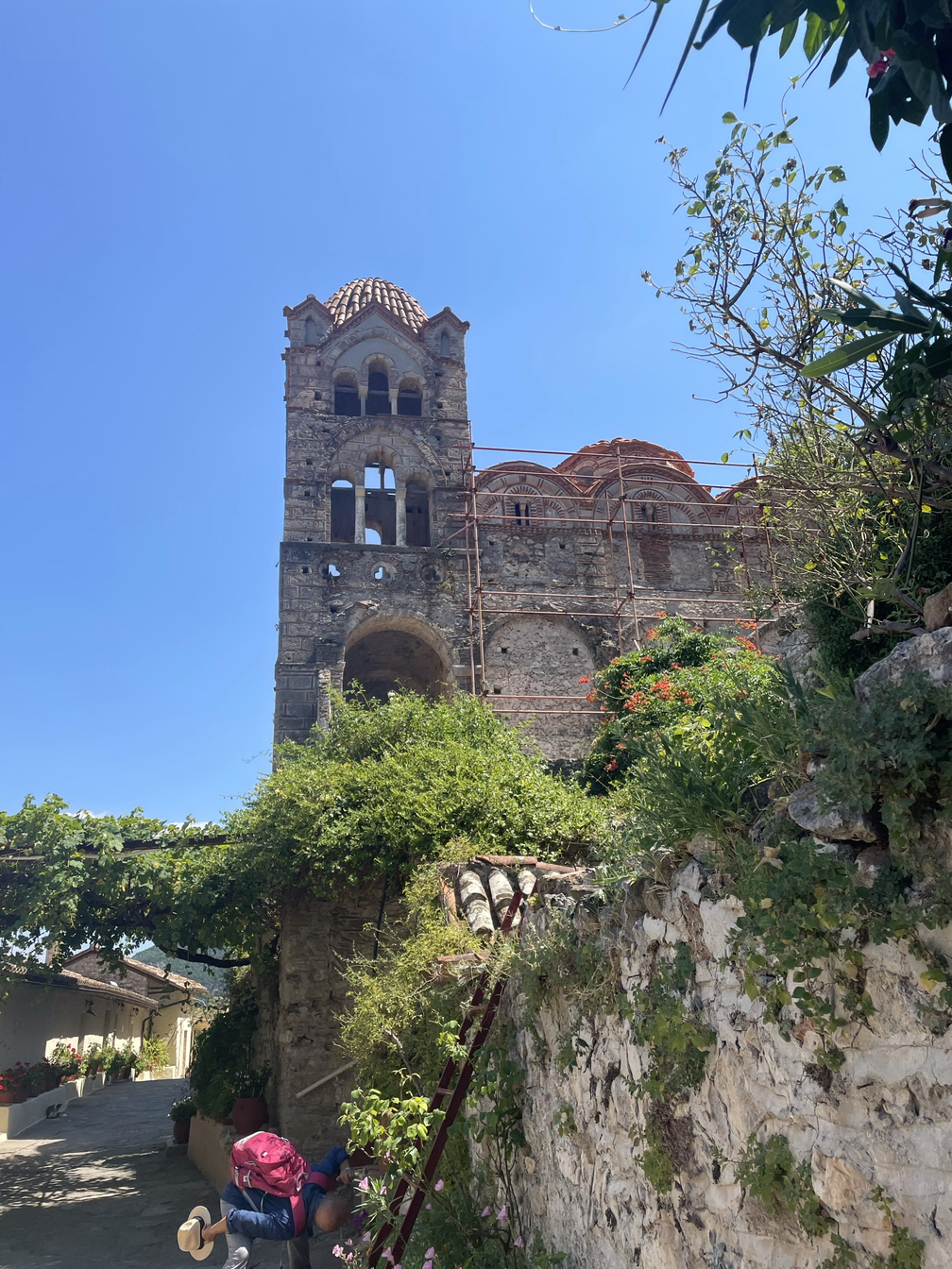 나는 미스트라스 성채에 들어가기 전 아래 동네에서나 내가 묵었던호텔에서 멀리 미스트라스 성채를 조망할 때마다 예쁘고 멋있는 것은 그렇다치고 왜. 저렇게 높은 산비탈에 도시를 건설했을까가 몹시 궁금했다. 미케네 왕국의 궁전도 산중턱부터 꼭대기에 지어진 바 있고 펠로폰네소스반도 전역에 수없이 많은 높은 산들에도 여기저기 산속 마을이 무수했으니 그리스에서 도시가 산에 지어진 것이 아주 별난 일은 아니라고 할 수 있지만 왜 그렇게 꼭 산비탈에 위험하게 걸쳐져 있는지가 풀리지 않는 수수께끼였다. 물론 그 첫번 째 이유는 방위와 안전이 최우선적 목적이었을 것임은 자명하다. 그럼에도 불구하고 경사도 45도 이상의 가파른 산 언덕에 지어진 성채는 그래서 더욱 위험스레 아름답고 그 폐허의 잔해들은 더 안타깝고 처연하게 가슴에 울림을 가져오는지도 모른다.