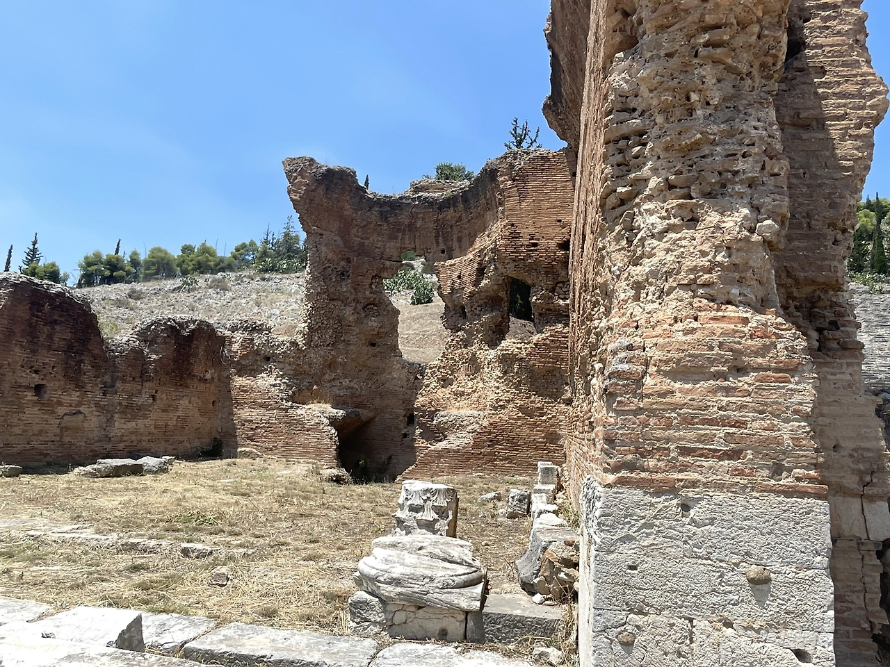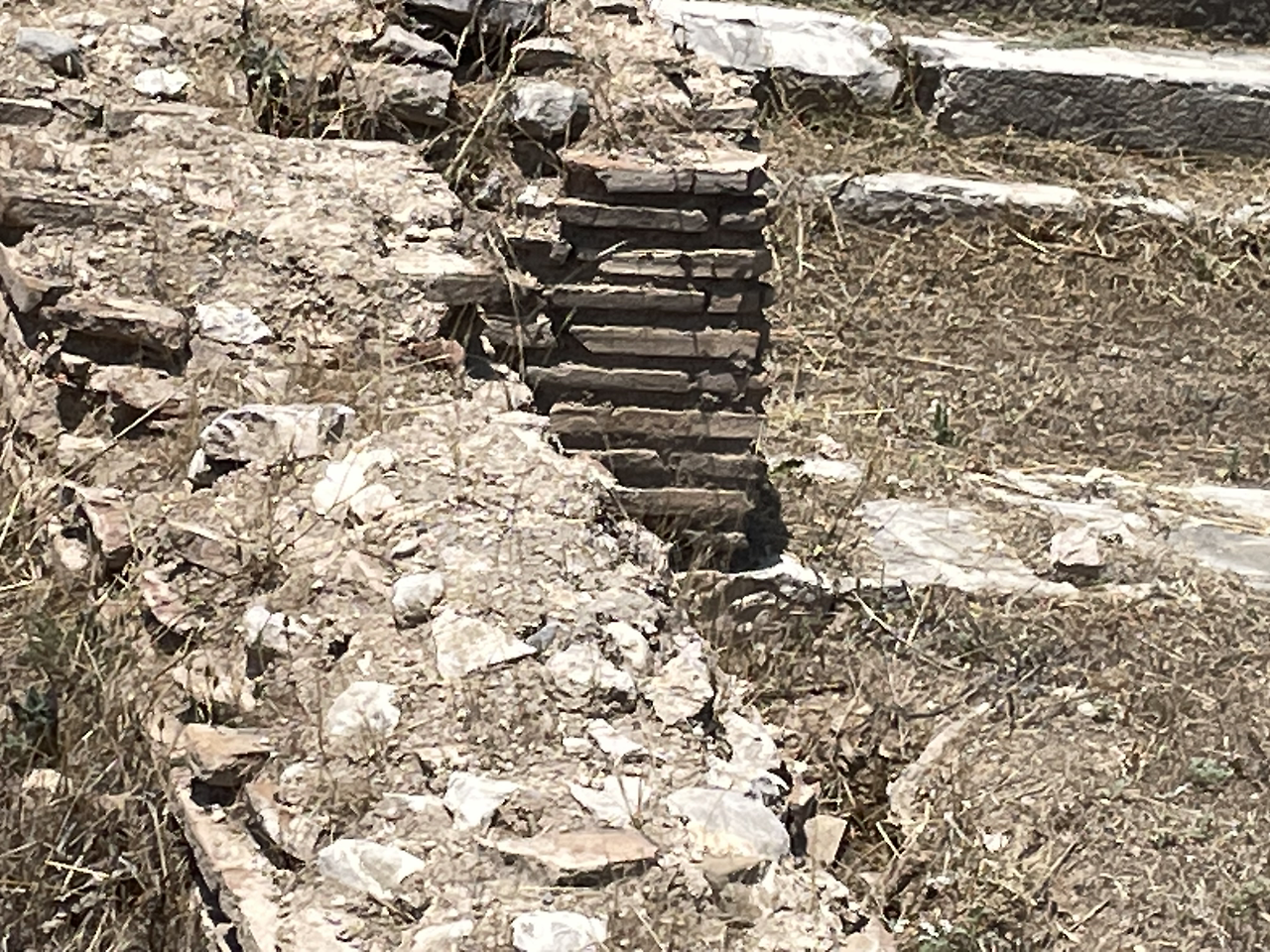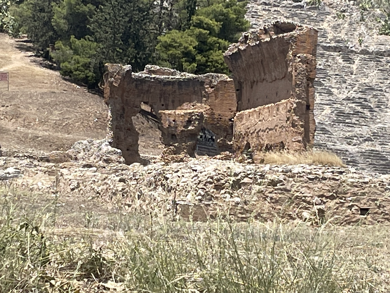 그래도 스파르타를 포기할 수 없었던 나는 유적지(Archaeological site )와 아크로폴리스에 찾아가기 위해 더위를 무릅쓰고 발걸음을 옮겼다. 레오니다스 동상에서 한 골목을 꺾어들며 700m쯤 걸어가니 스파르타의 유적지가 나왔는데 입구를 지나 가고 오는 동안 우리가 만난 관광객들은 채 열 명이 되지 않을 만큼 스파르타는 잊혀져 가고 있는 모양새였다. 그래도 나는 수천 년전의 역사의 흔적을 만나 보고 싶다는 일념으로 사방을 돌았다. 입구에서 100m쯤 떨어진 곳에서는 뭔가 유물들을 발굴하는 모양인 듯 흰 천막 속에서 대 여섯 명의 사람들이 일을 하고 있었는데 더위 탓인지 그닥 열심히 일을 하고 있다는 느낌은 주지 않았다. 전체적으로 그곳은 보수나 복원의 노력의 흔적은 별로 보이지 않았고 그대로 그냥 놔둔 채 내 알 바 아니라는 식으로 정부로부터, 시로부터, 또 시민들로부터 아무런 관심을 받지 못하고 역사의 뒤안길로 사라져 가려는 듯이 보였다. 나는 왠지 안타깝고 허무한 느낌이 들어서 거의 폐허인 채로 나뒹굴고 있는 신전기둥의 잔해들, 군데군데 뻥 뚫려 있는 벽들, 허물어진 계단이나 울타리, 방치된 건물 잔해와 부스러기 등에 안타까운 눈길을 보내면서 삥 둘러보고 난 뒤 힘없는 발걸음으로 돌아나왔다. 아크로폴리스 쪽에 가 보니 원형 무대가 그런대로 옛 모습이 조금이나마 남아 있었는데 그러나 그것은 고대 스파르타 국가 시대의 것이 아니고 로마제국 시대에 건설된 것이라고 했다. 끊임없이 벌어졌던 전쟁과 지진, 약탈 탓으로 스파르타의 원형은 거의 남아 있지 않았고 수천, 수백 년의 세월 동안 버려지고 무관심한 채 잊혀진 유적의 속살을 그대로 드러내면서 우울한 풍경을 연출하고 있었다.