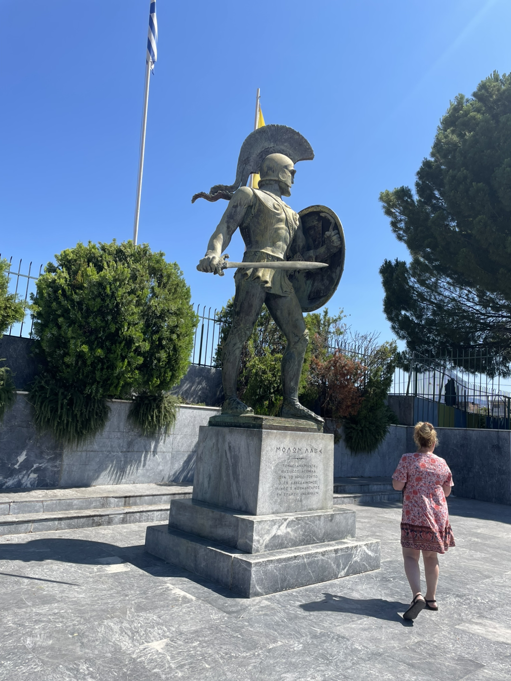 스파르타에 도착해 보니 의외로 작은 시가지에 다닥다닥 붙어있는 특색 없는 건물들의 모습이 그냥 어느 한적한 시골 도시의 느낌이어서 약간의 실망감이 들었다. 시내 몇 곳에 신고전주의 양식의 건물이 몇 개 있었지만 그리 크게 도시의 느낌을 좌우하진 못했다. 과거의 도시유적은 몇 군데만 도시 외곽에 버려진 듯 볼품없이 남아 있고 도시의 전체적인 모습에서 수천 년 전의 영광스러운 전설적 국가의 흔적은 찾아볼 수 없었다. 메인 도로라 할 수 있는 큰 거리의 끝자락, 국립경기장 정문 조그만 광장 앞에 전설적인 스파르타의 왕, 레오니다스의 동상이 서 있었고 몇 몇 관광객들이 그 앞에서 포즈를 잡고 사진을 찍고 있었는데 그 모습이 유일하게 이곳이 관광지라는 것을 알려주는 듯 했다.