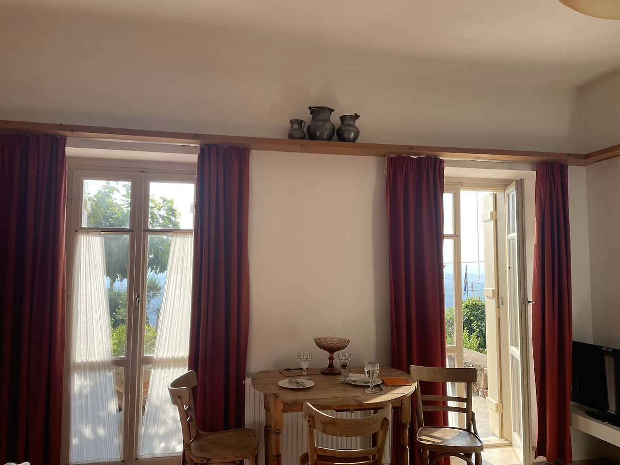 미스트라스에서 우리가 묵었던 호텔은 이틀만 묵고 떠나기가 아쉬웠다. 여기서 하는 일 없이 보름살기, 한달살기를 한다면 몇 년 동안 묵은 모든 스트레스를 날려버릴 수 있을 것 같았다. 우선은 넓은 방이 그랬고 창문도 여러 개가 세로로 좁고 길게 나 있어서 통풍과 채광도 완벽했다. 테라스로 이어진 문을 나가면 푸른 잔디가 깔린 얕은 경사의 마당이 연이어 있고 그 밑으로는 저 멀리 스파르타 도시가 한 눈에 들어오는 풍경은 그 이상 뭘 더 바랄 수 있으랴 싶게 내 마음을 충족시켰다. 산으로 올라오는 것이 싫어서 남편에게 마음 속으로 짜증낸 것이 미안해질 정도로 산 위에 위치한 집은 시야가 넓고 시원하고 발아래 풍경을 눈속에 품으면서 마음까지 넓어지는 듯한 탁 트인 전망을 자랑한다. 산 위 집의 재발견이었다. 그리스 사람이라면 여름 별장으로 충분히 욕심내고 싶은 그런 집이었다. 내가 만일 단독주택을 갖게 된다면 이렇게 구조를 짜고 싶다는 생각이 들 정도였다.