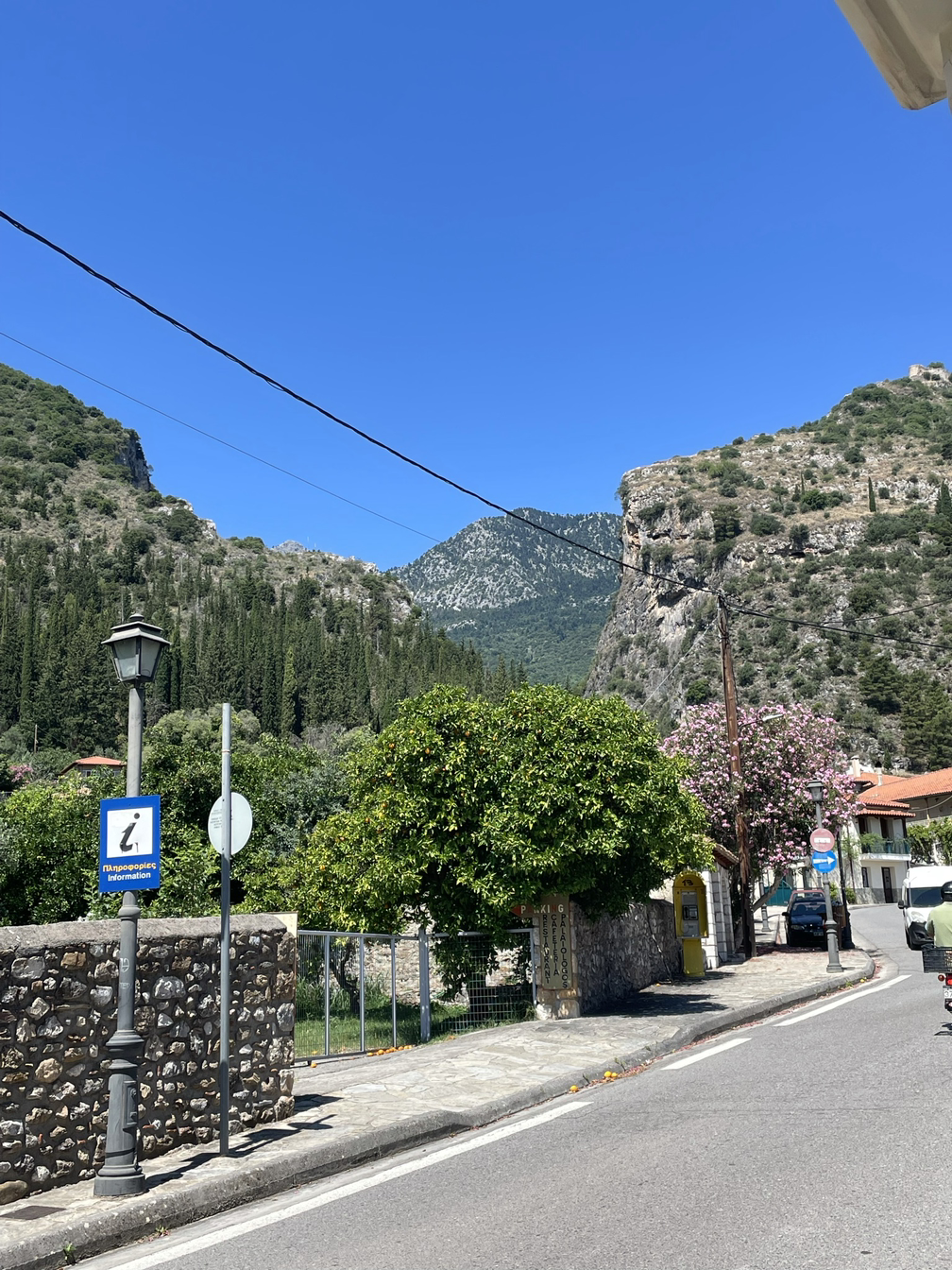 스파르타의 유적을 다 둘러보는 데 약 두 시간 남짓밖에 걸리지 않았고 시간이 딱 점심을 먹을 시간이 되었으므로 우리는 시내를 천천히 돌아보며 식당을 찾아 보았으나 유적지를 둘러 보며 실망한 마음 때문인지 그 어느 곳도 별로 마음에 차지 않아 그냥 다시 미스트라스로 돌아가 어제 갔던 식당에 다시 가기로 마음을 정했다. 스파르타에서 미스트라스로 통하는 7km의 거리는 시원하게 일직선으로 뻗어 있었고 길 양옆으로는 가로수가 멋지게 자라 있어 답답했던 마음이 다소 풀어지는 듯 했다. 고대 스파르타 당시에도 이 길이 있었는지는 모르겠지만 내멋대로 이 멋진 길을 스파르타의 병사들과 장군들이 말을 타고 힘차게 내달렸을 것을 상상하면서 스파르타에 대한 아쉬움을 조금 달래볼 수 있었다. 미스트라스 시내는 시내랄 것도 없이 조그만 마을이어서 우린 숙소로 돌아가기 전에 생수 한 병과 마침 갑자기 먹고싶은 마음이 생긴 복숭아와 아이스크림을 사기 위해 아주 작은 잡화점에 들렀다. 가게 내부는 좁고 어두웠고 계산대에서 계산을 해준 매부리코를 한 아주머니마저 약간 불친절했기 때문에 살짝 마음이 상했다. 동양인에 대한 인종차별적 관념을 가진 것이 아닌가 의심될 정도였다.