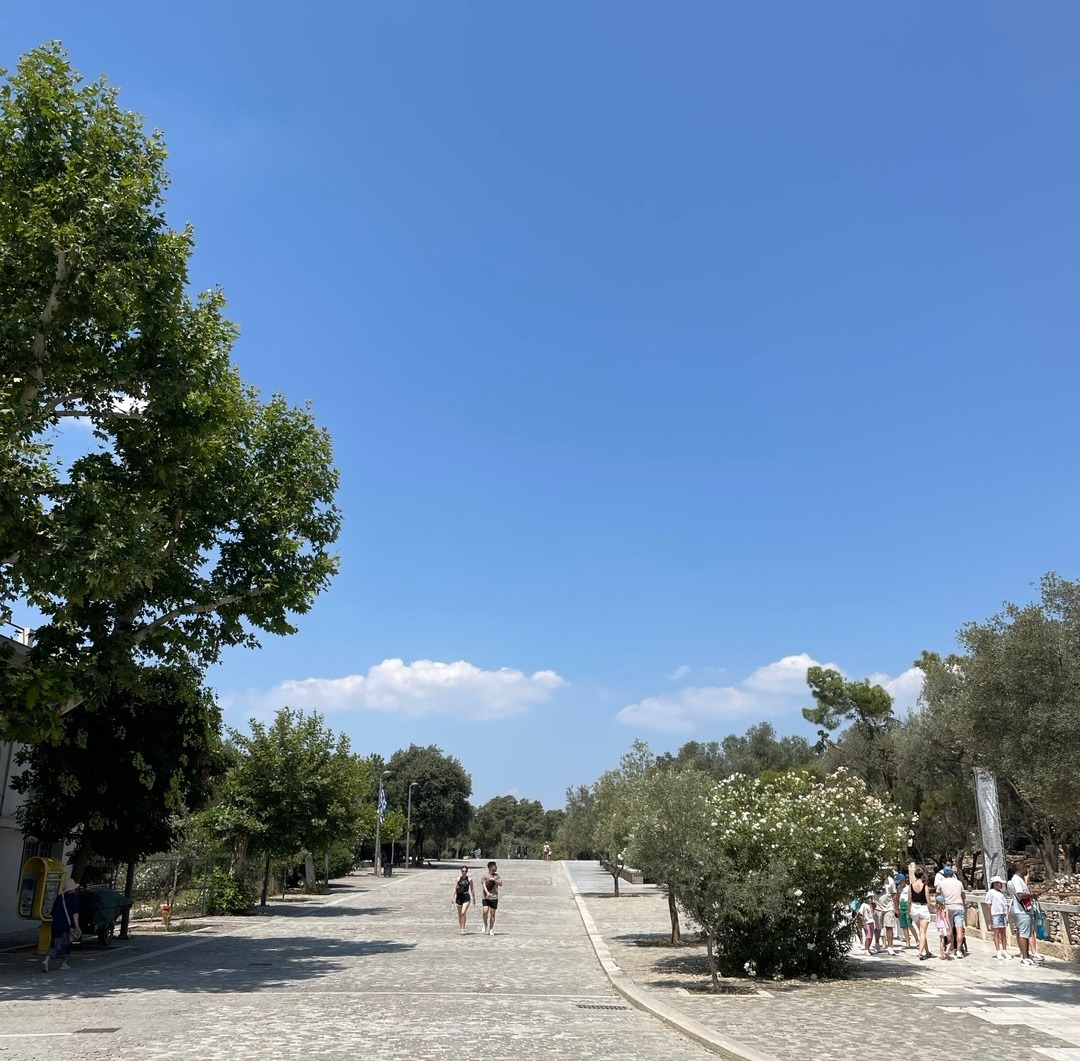 그런데 며칠 전부터 그리스 당국에서 폭염경보를 내리고 아크로폴리스를 12시부터 오후 5시까지 폐쇄한다는 뉴스가 보도되고 있었다. 그럴만도 한 것이 일기예보상으로는 낮시간 최고기온이 41도이지만 언덕과 바위가 많은 아크로폴리스는 3~4도 정도 더 높은 기온이 예상되기 때문이다. 며칠 전부터 보도되기 시작한 남유럽의 폭염상태는 이 지구가 들끓고 있음을 여실히 보여주면서 지구인들에게 환경오염을 경고하고 있지만 글쎄 우리 지구인들이 이 위기를 슬기롭게 극복해낼 수 있을까 나로서는 몹시 회의적이다. 비행기를 타고 다니는 오버투어리즘에 나 자신도 한몫하고 있는 처지로서 사실 아무 할말이 없으니 다음부터라도 조심하고 사양하겠다고 결심해야하나 싶다. 여행을 다 마치고 서울로 와서 그리스 산불 소식과 하와이 마우이 섬의 산불 소식을 들었을 땐 마음이 아프고 죄진 듯 해서 몹시 불편했다. 우리 남편 왈 “지구의 적은 인간이므로 인간이 멸망해야 지구는 비로소 되살아날 것”이라고 과격하게 말해서 남편이 많이 얄미웠지만 어찌 보면 또 한편으로 맞는 말이기도 해서 마음만 복잡해졌다. 지구와 인간이 평화롭고 따뜻하게 공존할 수 있기를 !!