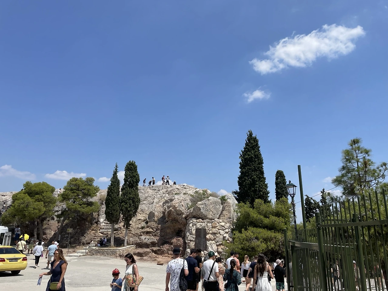 아테네에는 이 아레오파고스 언덕과 필로파포스 언덕, 리카베투스 언덕이 있는데 그 중 리카베투스 언덕이 제일 높고 정취가 있어서 사람들은 해질녁이면 그곳을 찾아 올라서 아래로 내려다 보이는 풍경과 황혼의 하늘을 즐기면서 데이트를 즐기는 것 같다. 아레오파고스 언덕과 필로파포스 언덕은 역사적으로 중요한 의미가 있어서 관광객들이 빠트리지 않고 들리는 코스이며 여기도 저녁이면 일몰명소로 사람들에게 사랑받고 있다. 또 이 언덕은 우리나라 기독교인들에게는사도 바울이 설교를 했던 곳으로 유명해서 성지순례를 하는 사람들이 꼭 들르는 장소이기도 하다 올라가는 입구 돌탑의 석판에는 사도행전의 귀절들이 새겨져 있다