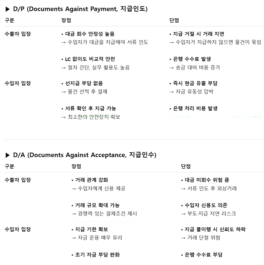 D/P(Document against Payment): 대금 지급 후 서류 인도