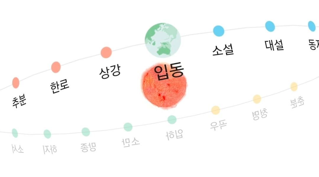 입동;24 절기 중 열아홉 번째 절기. 이날부터 겨울이 시작된다고 하여 입동(立冬)이라고 한다. 태양의 황경(黃經)이 225도일 때이며, 양력으로는 11월 7일 또는 8일 무렵, 음력으로는 10월에 든다. 서리가 내린다는 상강(霜降) 후 약 15일, 첫눈이 내린다는 소설(小雪) 전 약 15일에 든다.(#출처:네이버 지식백과에서 정의)