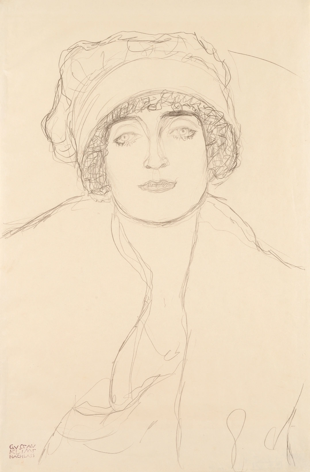 구스타브 클림트(Gustav Klimt)는 감정의 가장 깊은 곳을 우아하고, 매력적인 감동을 주는 그림으로 그려냄으로써 예술계에 새로운 분야를 만들었습니다. 충동적이고 쾌락주의자였던 클림트는 비엔나 상류 사교계에서 여성들을 그릴 수 있는 허가를 받을 수 있었습니다. 그가 그리는 상류층 여성들과 모델들의 초상화 기법은 수많은 드로잉 연습을 통해 구현되었습니다. 이런 그림들은 클림트에게 가장 기밀적인 작품 활동이었으며, 대중을 위한 전시용이 아니었습니다. 빠르고 표현적인 드로잉 기법으로, 그는 모델의 매력을 충분히 담을 수 있는 자세를 포착하려 했습니다. 이 섬세한 그림의 '모자를 쓴 여인의 초상화'는 클림트의 마지막 작품 중 하나인데요, 현재 프라하 국립