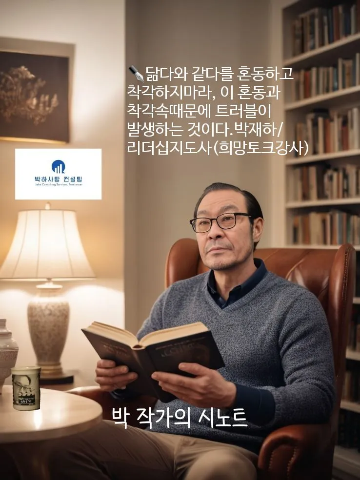 이와 같이 이제는 닮았다고 해서 그 사람과 생각까지 같다는 혼동, 착각에서 인식을 전환하여 사람들과 만나고 대화하시기 바랍니다. 말은 생각에서 나오듯이 잘못된 생각의 깨달음에서의 인식의 전환부터 바로잡고 상대방을 이해하여 대화해야 원활한 소통이 이루어지는 것이다.