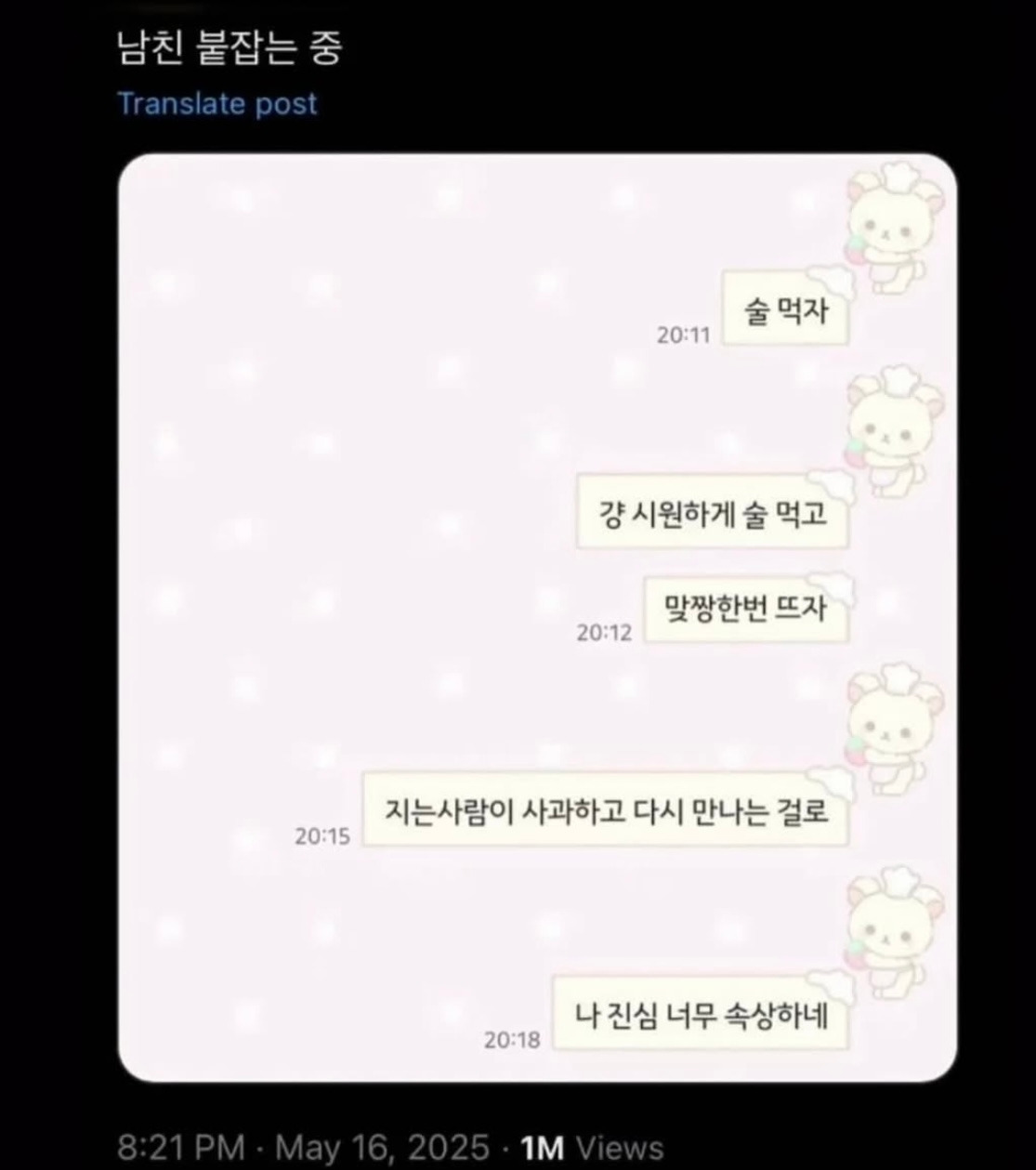 진심으로, 세상에 천하제일 최악의 이별 대회 같은 게 있었으면 좋겠다. 다들 모여 사랑보다 이별의 얘기만 주절주절 늘어놓고, 웃음 섞인 말로 희화화하다가도 결국 뒤에서는 눈물로 마무리되는 자리. 그 자리에 서면 알 수 있지 않을까. 지금 내가 병원을 가야 하는 상황인지 아닌지, 그 기준이 조금은 분명해지지 않을까. 세상에는 아픈 사람이 참 많다. 몸이든, 정신이든. 그런데 정신이 너무 아프면 결국 몸까지 지배하는 것 같다.
