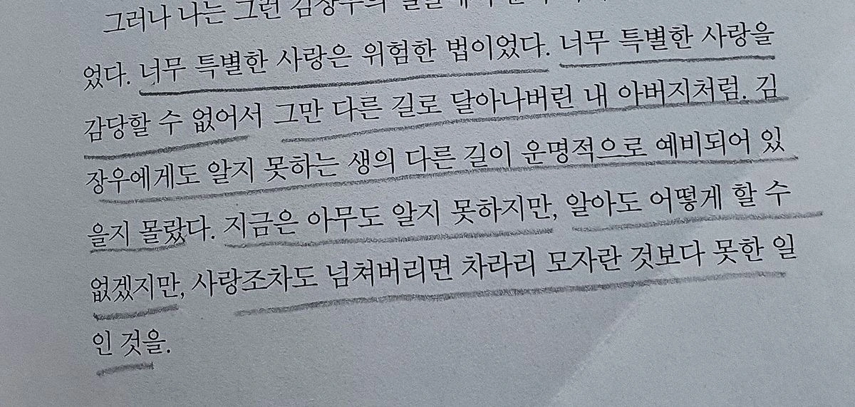 그런데 넌 날 만나는 내내 혼자 있는 느낌을 견뎠을 거란 생각에 무너졌어. 네 아픔을 내가 얼마나 힘들어했는데, 다른 사람이 너에게 남긴 상처를 내가 얼마나 원망했는데. 그런데 결국, 내가 너에게 가장 큰 상처를 준 사람이었다는 사실에 숨이 막히더라.