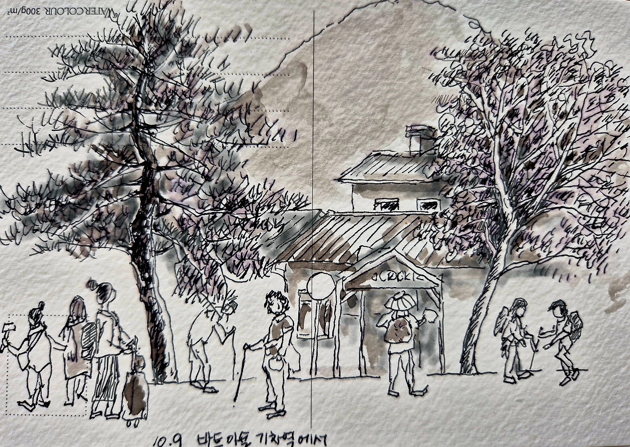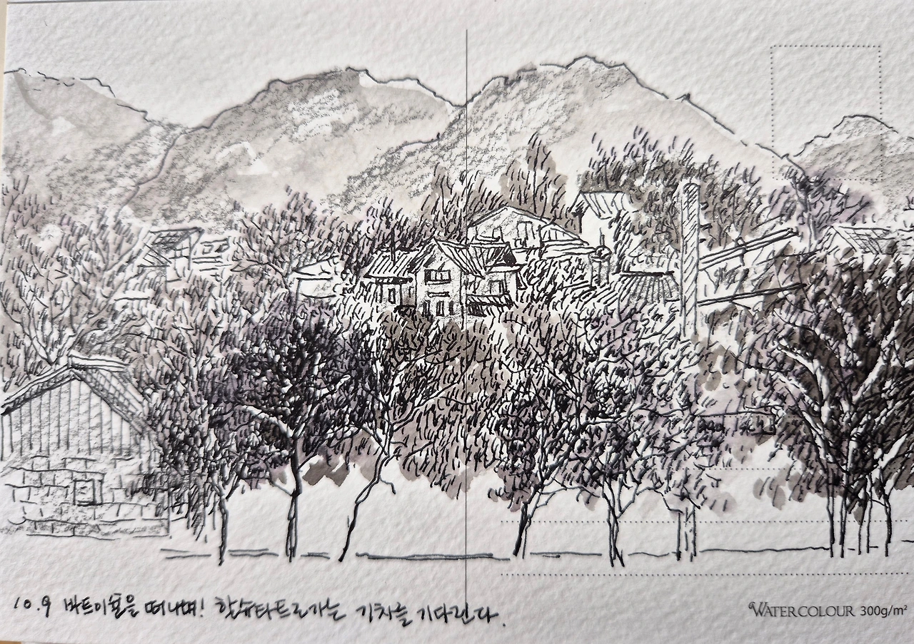 바트이슐에서 기차가 지연되는 덕에 세 장의 엽서에 끄적인다.바트 이슐에서 예고 없이 기차가 이십 분이나 지연됐다. 덕분에 바트 이슐과 천천히 작별인사를 나누었으니 아쉬운 맘 없이 할슈타트행 기차에 올랐다. 그.런.데 내릴 정거장이 아닌데 기차가 멈췄다. 사람들이 우왕좌왕 모두 내리는데 한국 여행객들만 남아 영문모를 표정이다. 하필이면 오늘까지 할슈타트역이 공사 중이란다. 미리 내려 버스로 이동을 해야 하는데 이를 알지 못했던 한국 여행자들만 당황한 참이다. 어찌어찌 우리와 같은 모녀 두 팀과 남매팀으로 오해한 예쁜 모자팀 모두 여섯 명의 여행자들이 머리를 맞댔다. 버스가 도착하기 전에 함께 할슈타트 산책을 한다. 서로 이름을 묻지 않아도 친근한 느낌이 바로 끈끈한 동포애였던가.