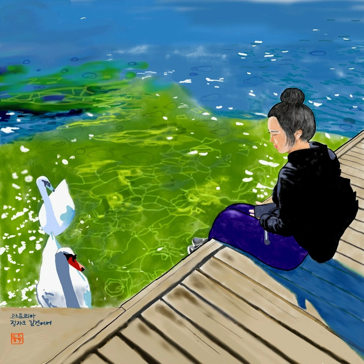 백조의 까만 다리도 투명하게 들여다보이는 볼프강 물속에 파란 하늘이 담겼다. 그 하늘에 하준이도 출렁이더라.
