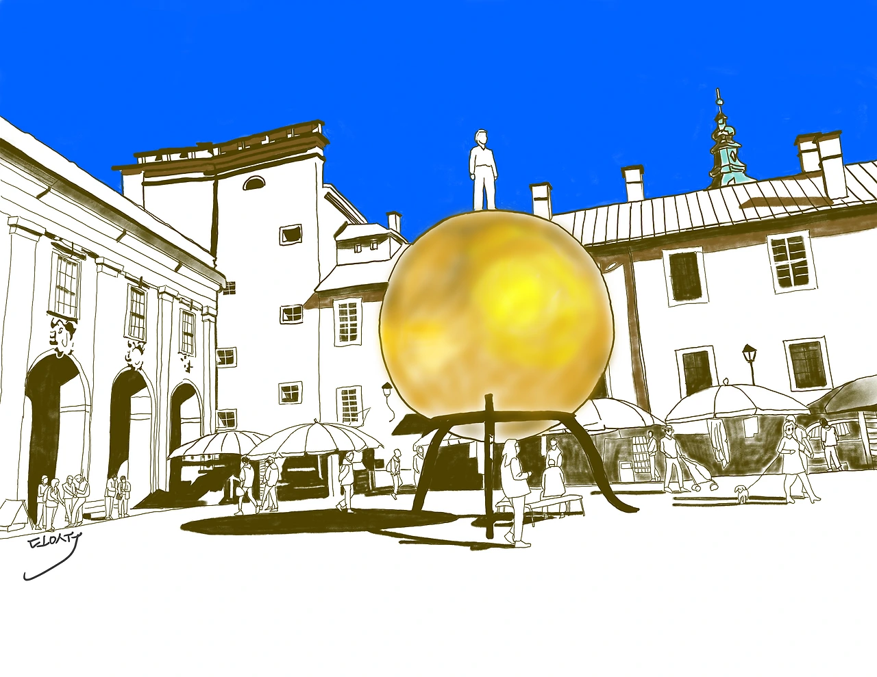 호엔잘츠부르크 요새로 향하는 레지던츠 광장에는 커다란 공모양의 조각이 자리하고 있다. 스테판 발켄홀의 스파이라(Sphaera), 구란 작품이다. 황금지구본 위에는 젊은 모차르트가 서 있다. 모차르트와 같은 곳을 바라보거나 손바닥 위에 젊은 모차르트를 올려놓은 사진을 찍는 명소라 사람들로 발 디들 틈 없다.